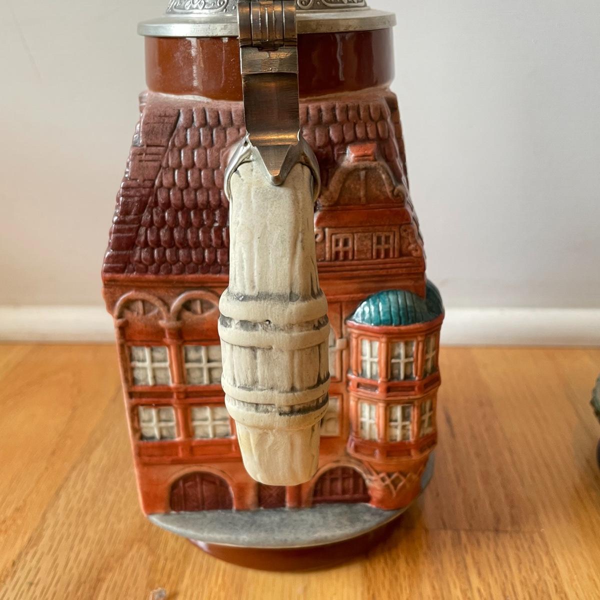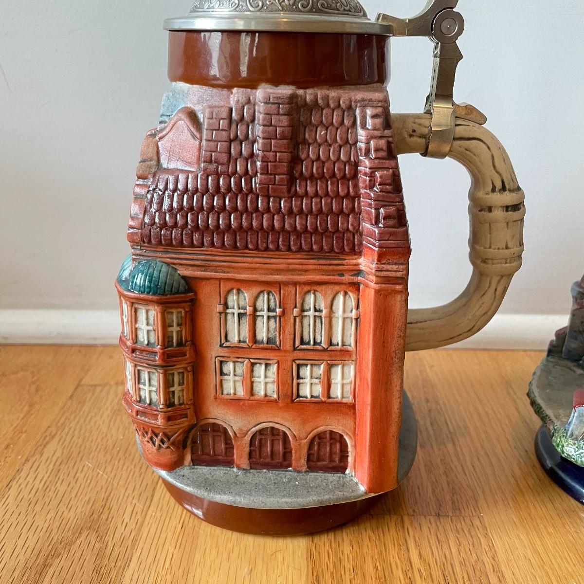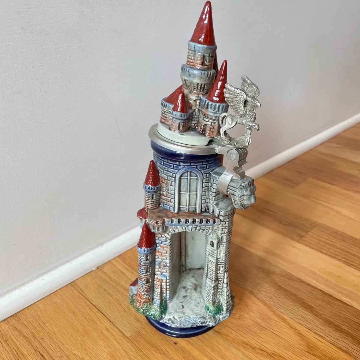 Decorative castle stein with Limited Edition markings by Thewalt. Both steins are made in Germany with pewter accents. The castle is 11.5” tall. Shipping available.