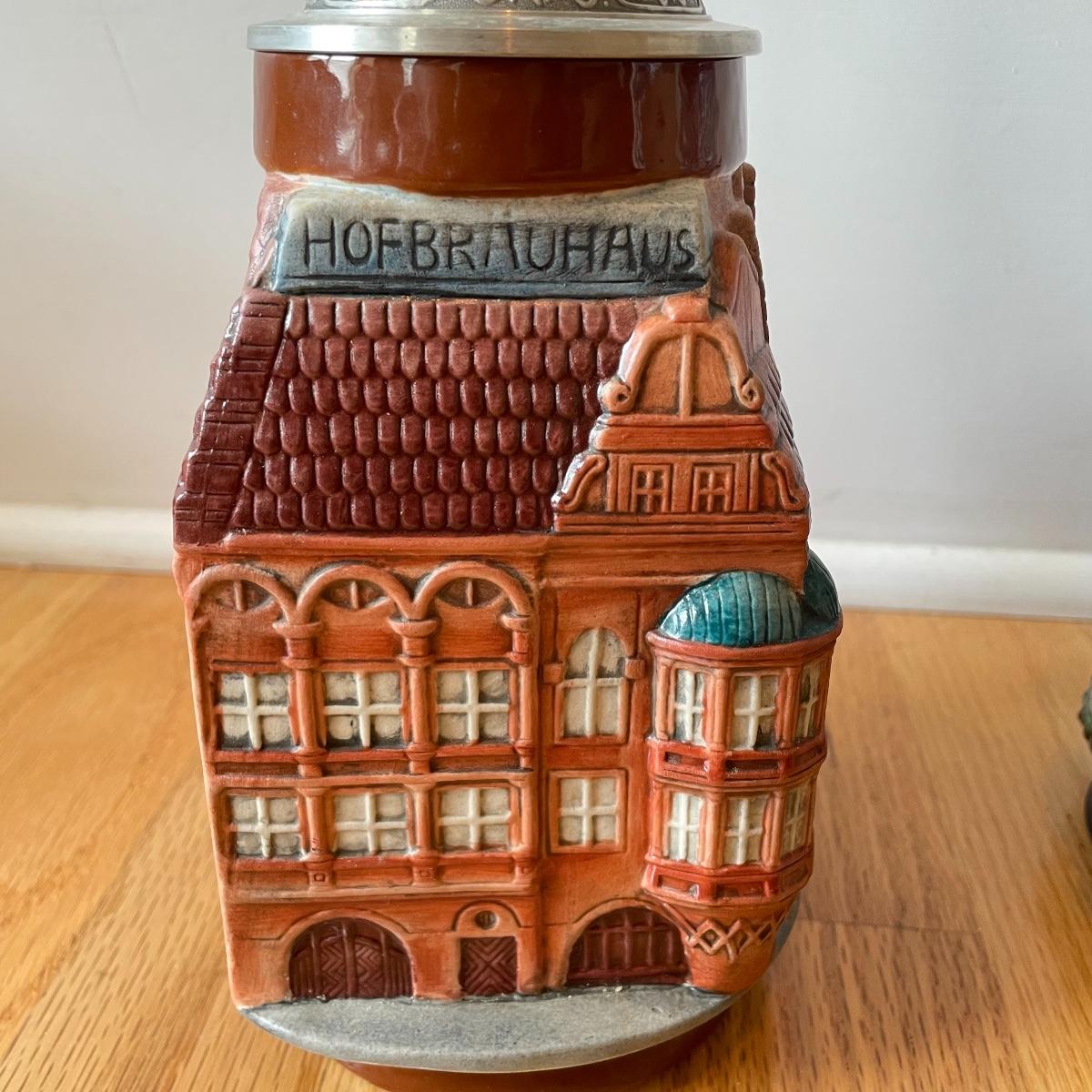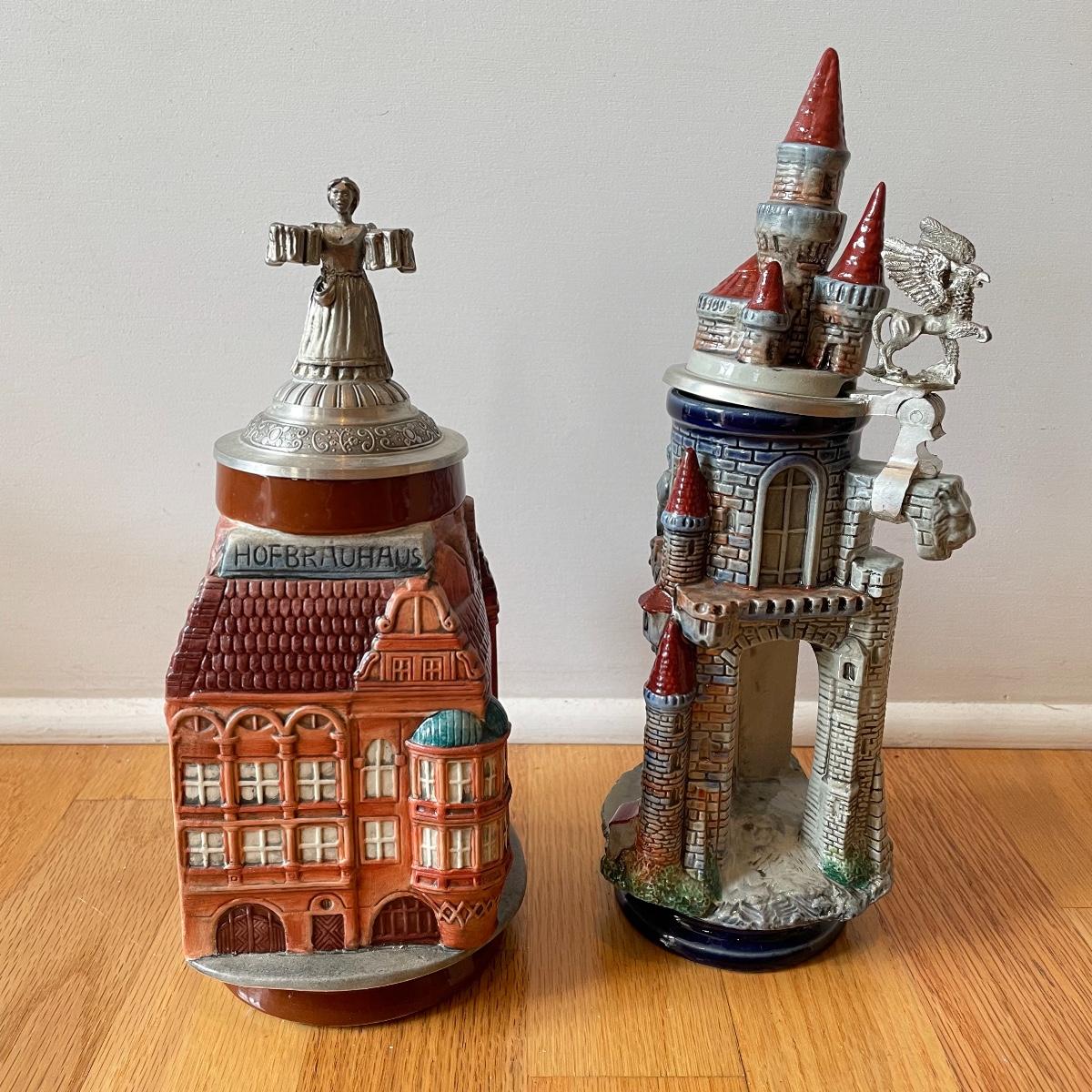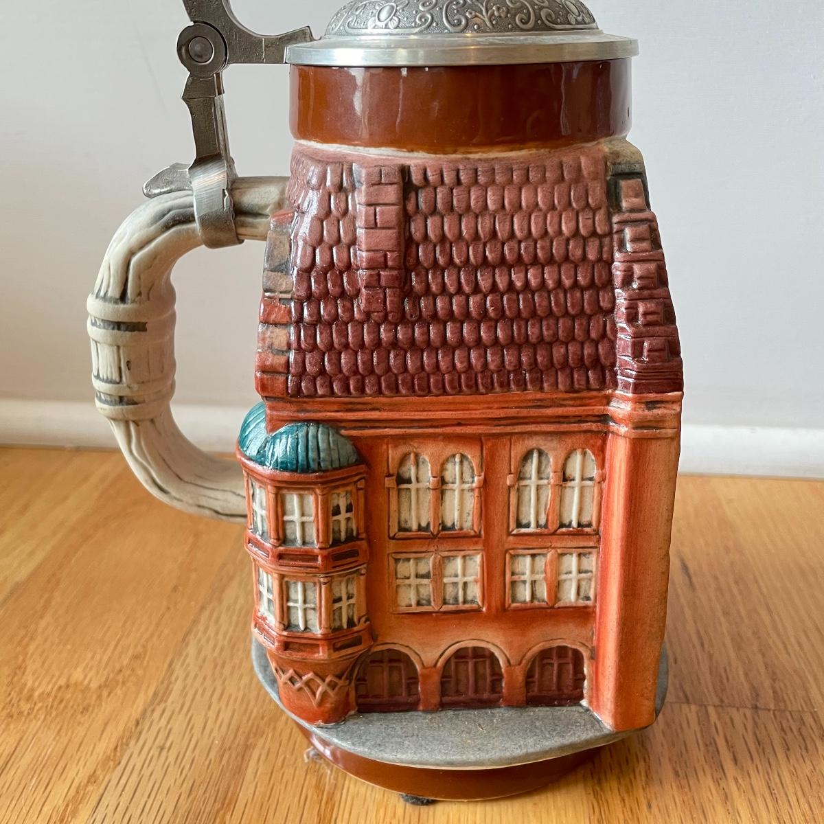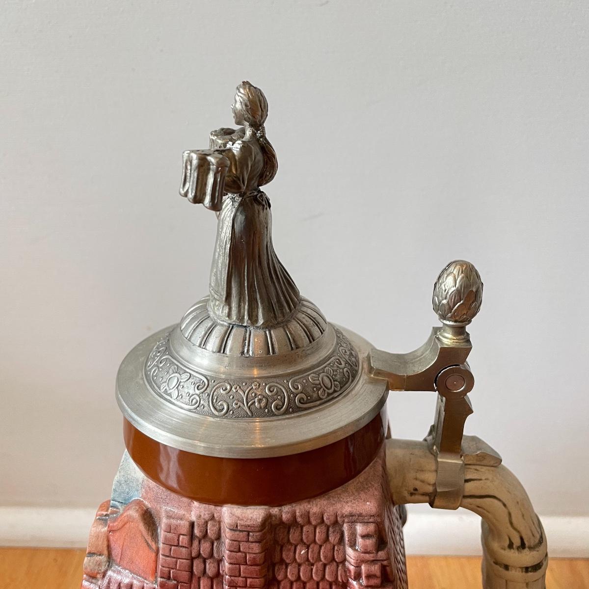 Decorative castle stein with Limited Edition markings by Thewalt. Both steins are made in Germany with pewter accents. The castle is 11.5” tall. Shipping available.