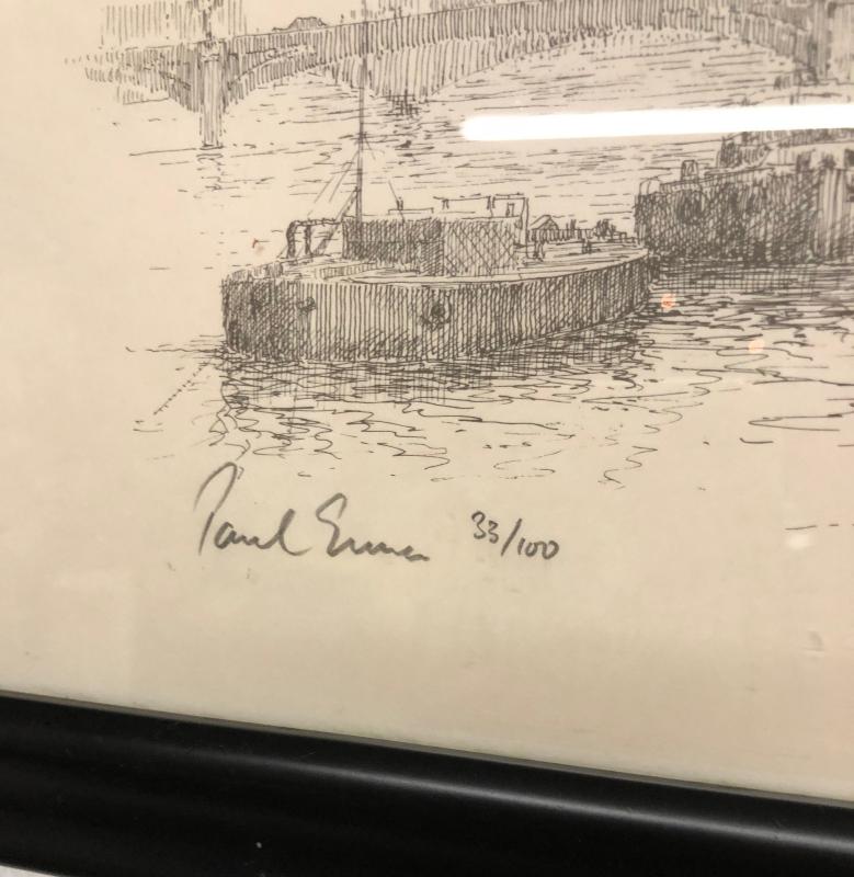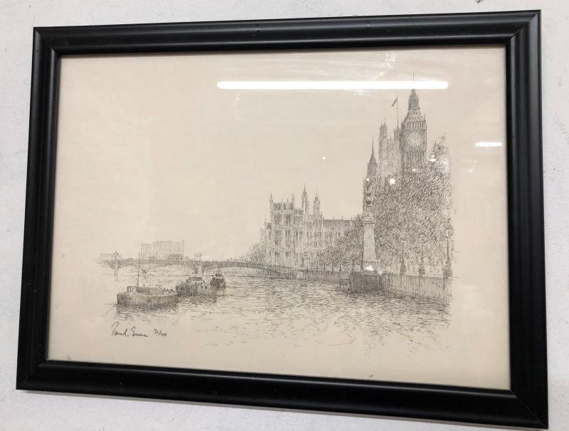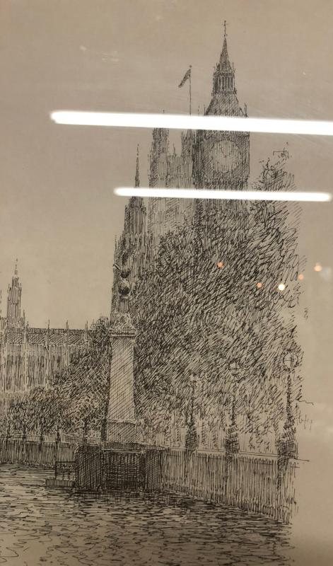 Westminster Abbey...Castle on the Thames River..English architectural pencil drawing..Signed and numbered..Limited edition...Framed...