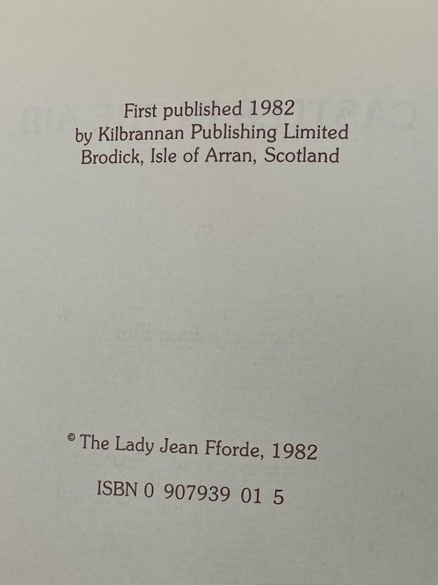 Description: Castles in the Air The Memories of a childhood in two castles by Lady Jean Fforde Copyright 1982; Material: Paper