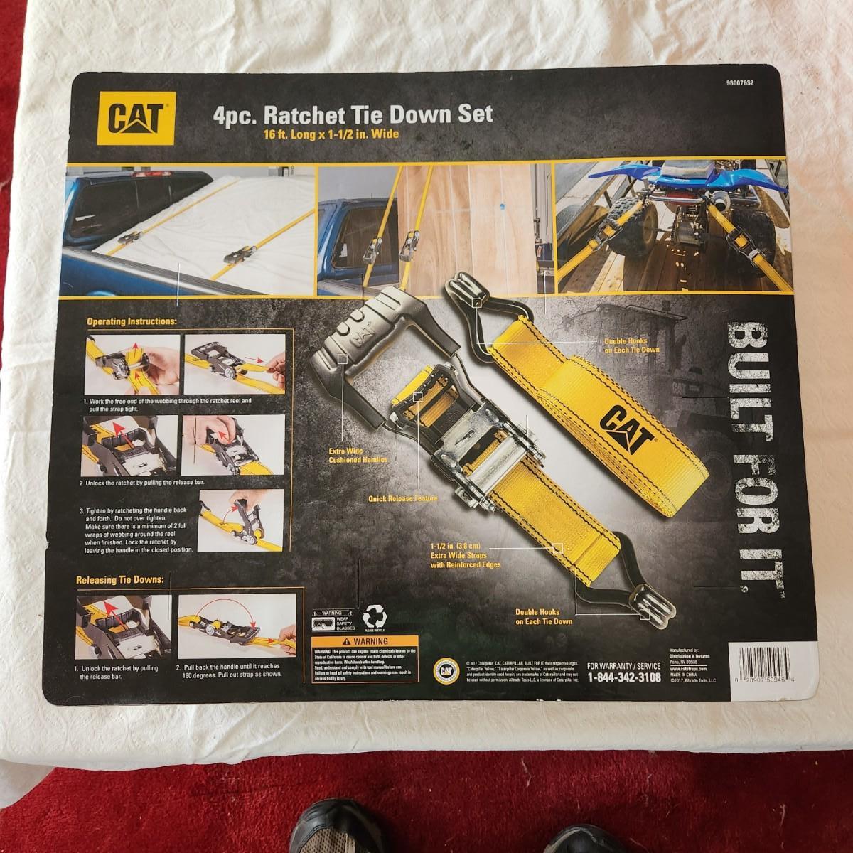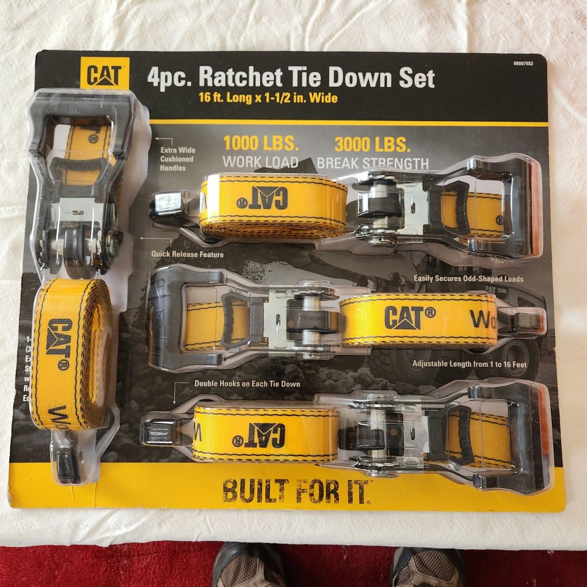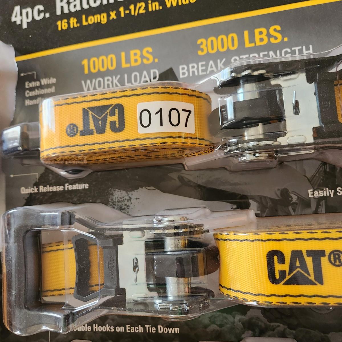 CAT 4pc Ratchet Tie Down Set 16ft Long x 1-1/2in Wide, Break Strength 3000 LB
