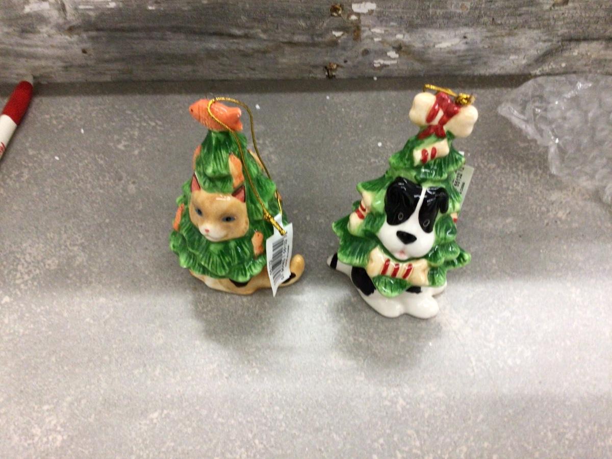 You get three cat and three dog Christmas tree ceramic bobbles. Set of six.