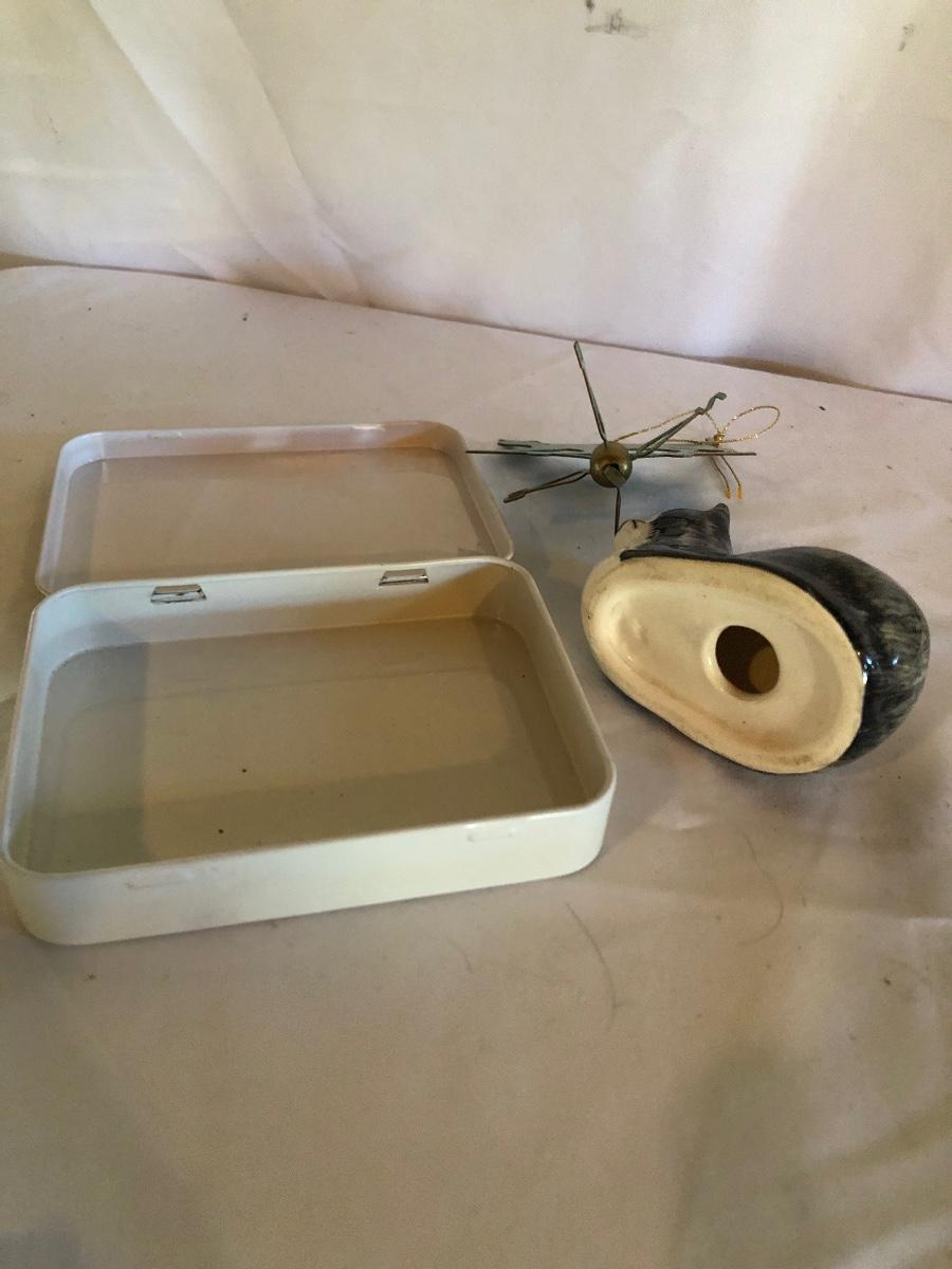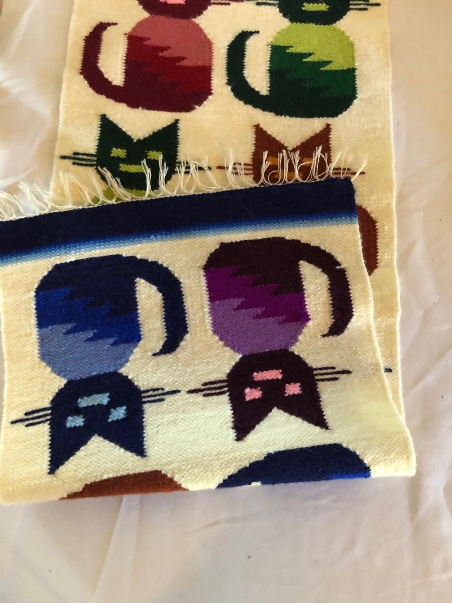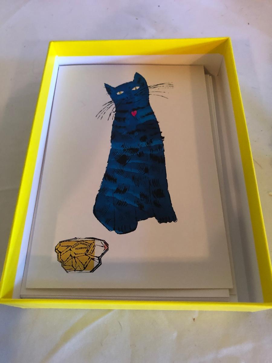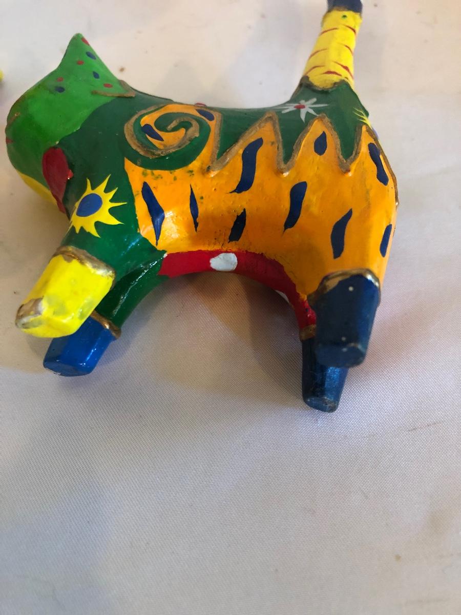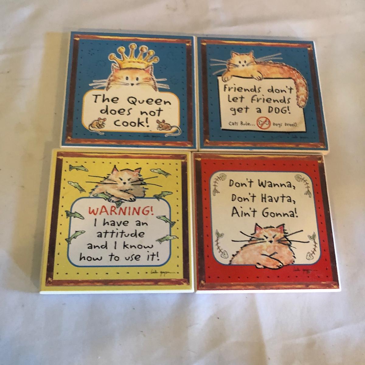 Lot includes signed Purro book, four ceramic coasters picture frame, fabric wall hanging, two colorful wooden cats, two furry cats, Andy Warhol note cards and more. Also includes three signed and framed cat prints, cat birdhouse, silhouette and two ceramic cat mini dishes. Birdhouse measures 6.5” x 8” x 12”. Frame measures 6.5” x 7”.