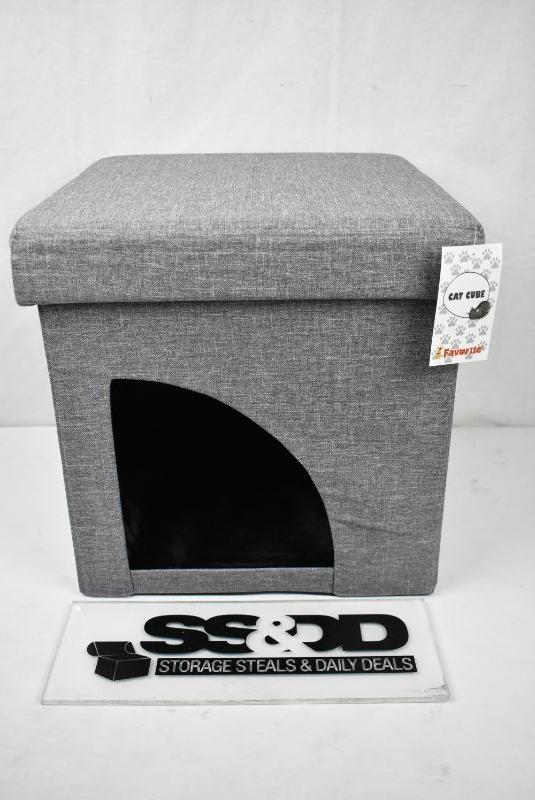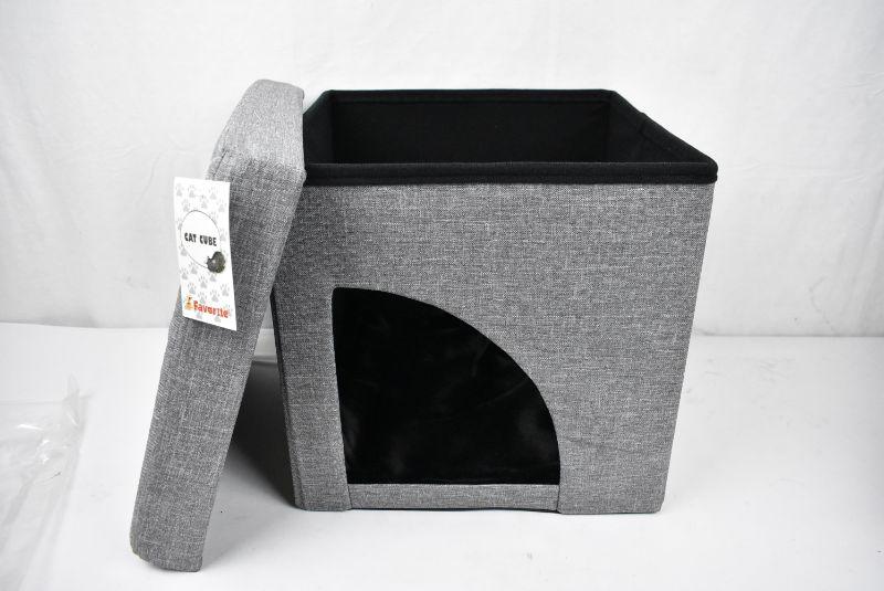 Cat Cube Play Bed, Portable with Super Soft Liner & Lid 14"x14"x15" Gray - New