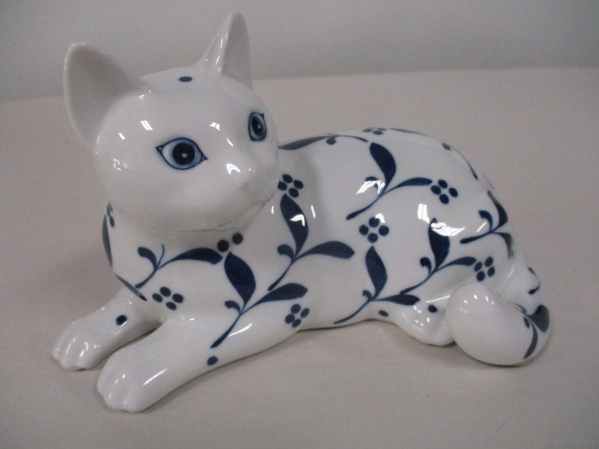 Blue and White Villeroy & Boch Cat Figurine Gallo Design Royal Hand Painted