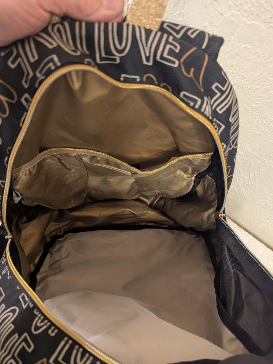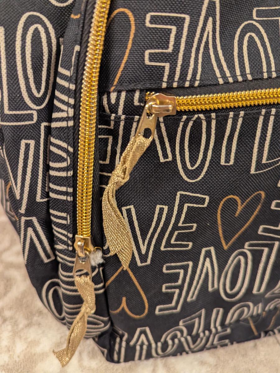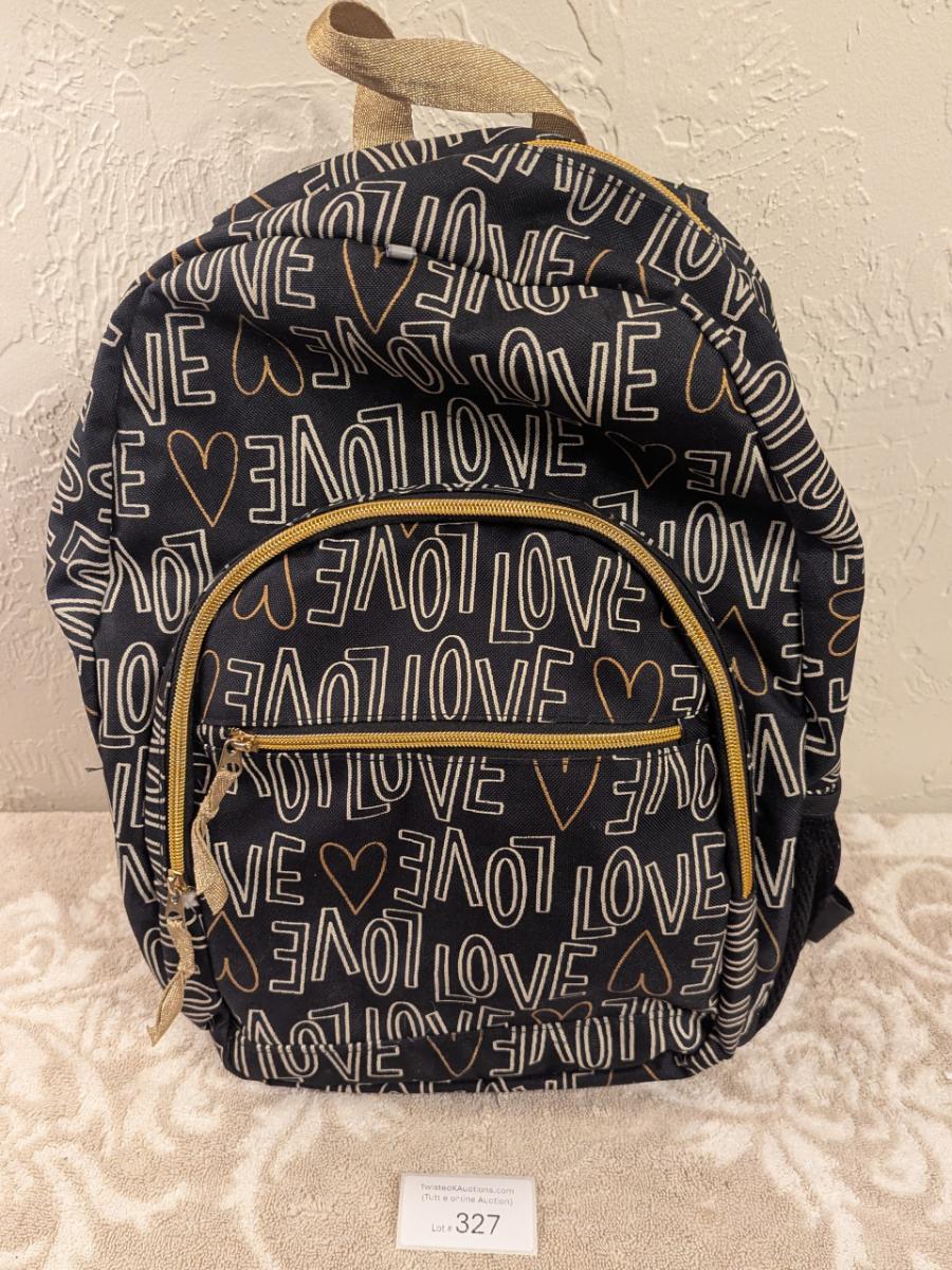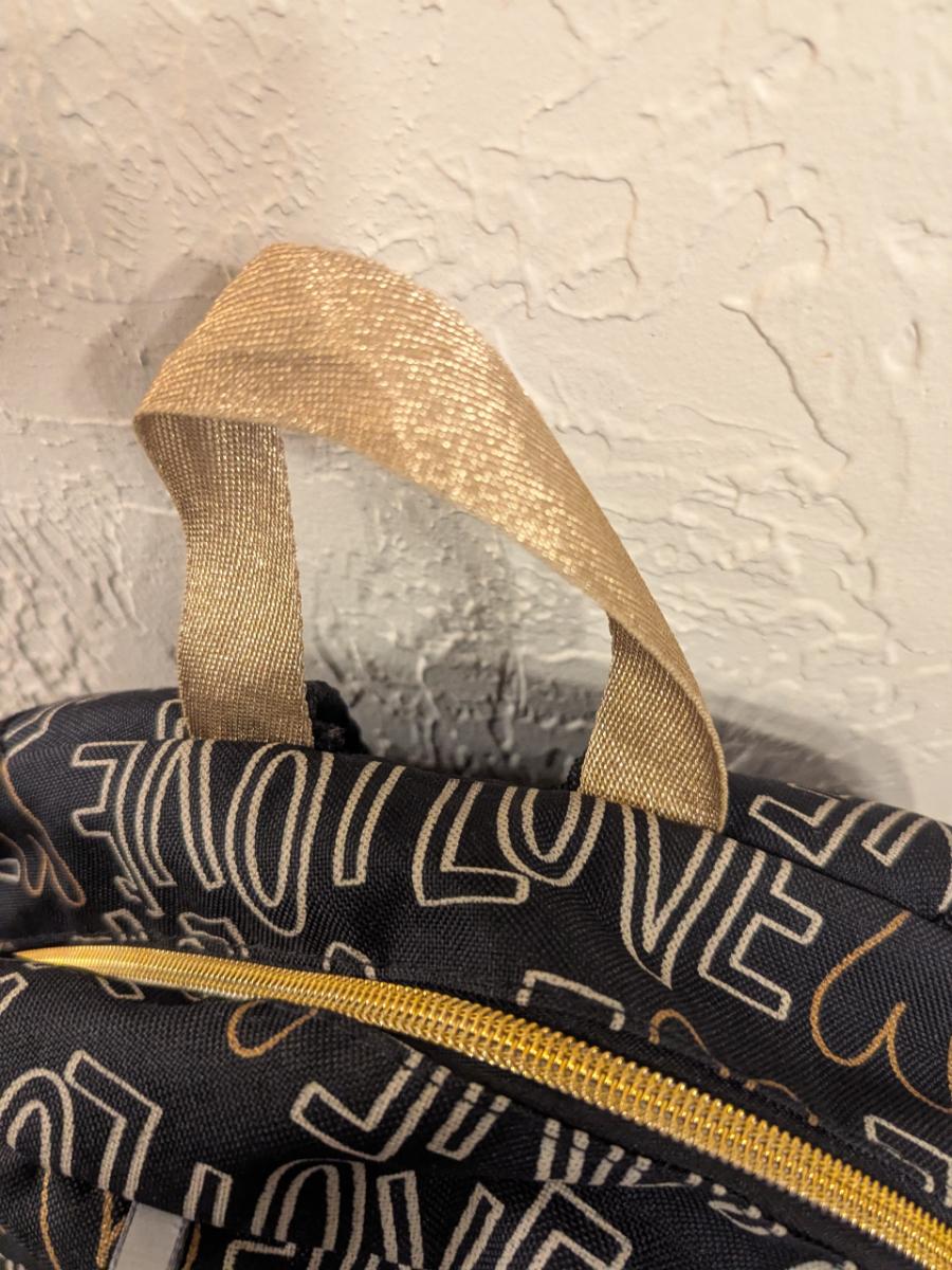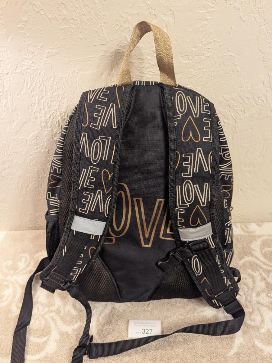 Cat & Jack 17" Love Print Kids' Backpack in black and gold.