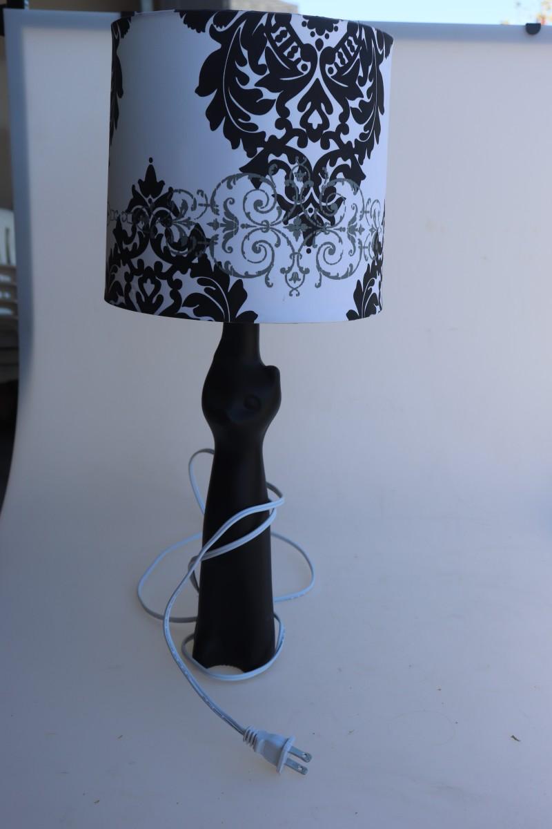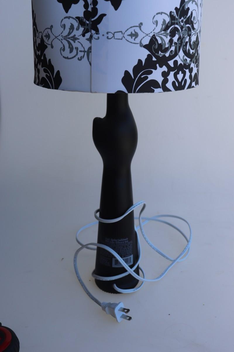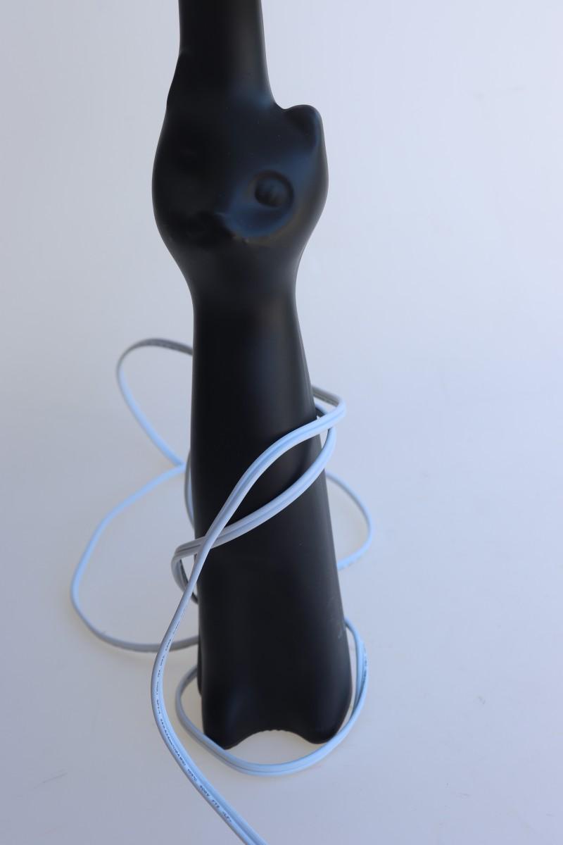 An adorable cat-themed lamp featuring a black and white shade, perfect for adding a whimsical touch to a child's room or for cat lovers.