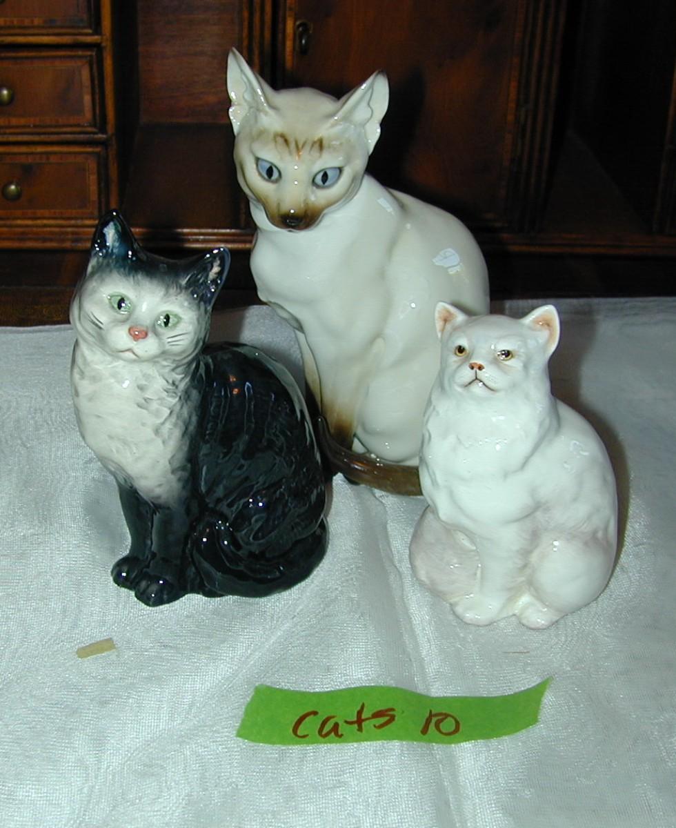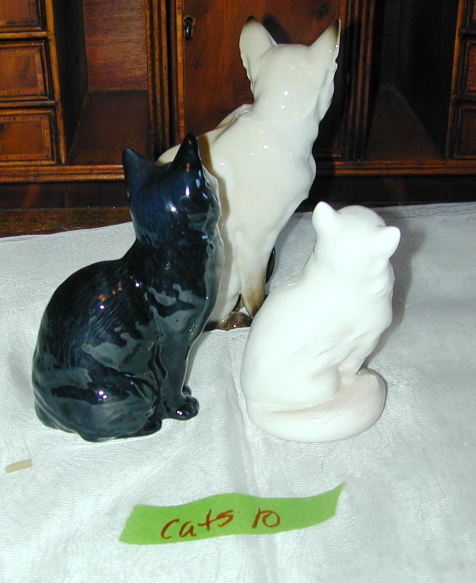 Cat Lot #10 -- Vintage porcelain Cat Figurines Various Makers - tallest is 7.5" tall