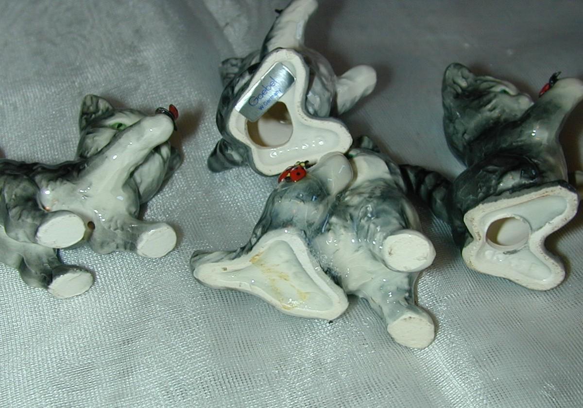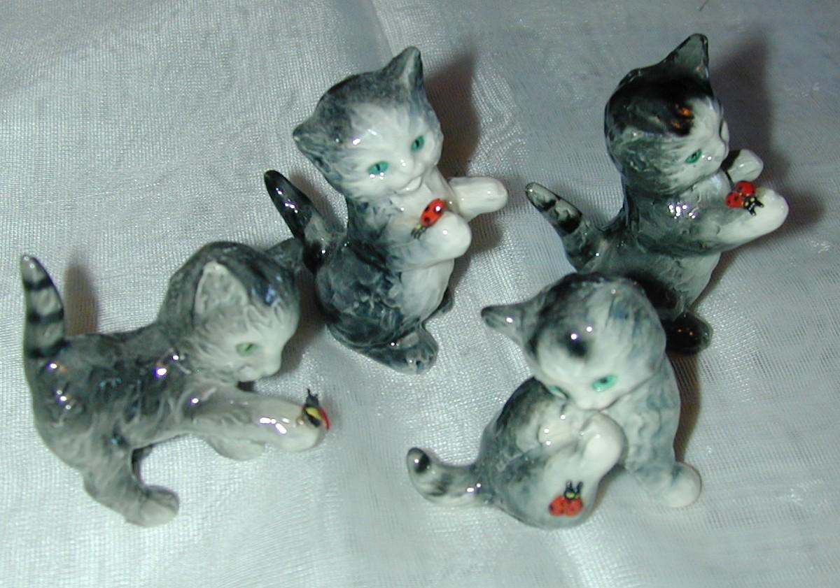 Cat Lot #2 --4 Goebel Ladybug Cats Gray Tabby - one ladybug is missing a wing