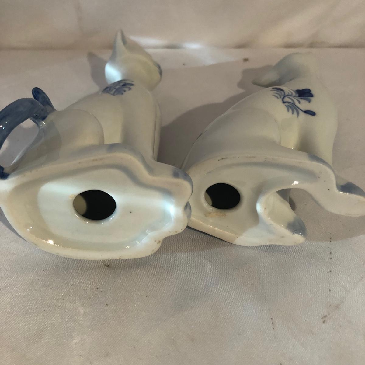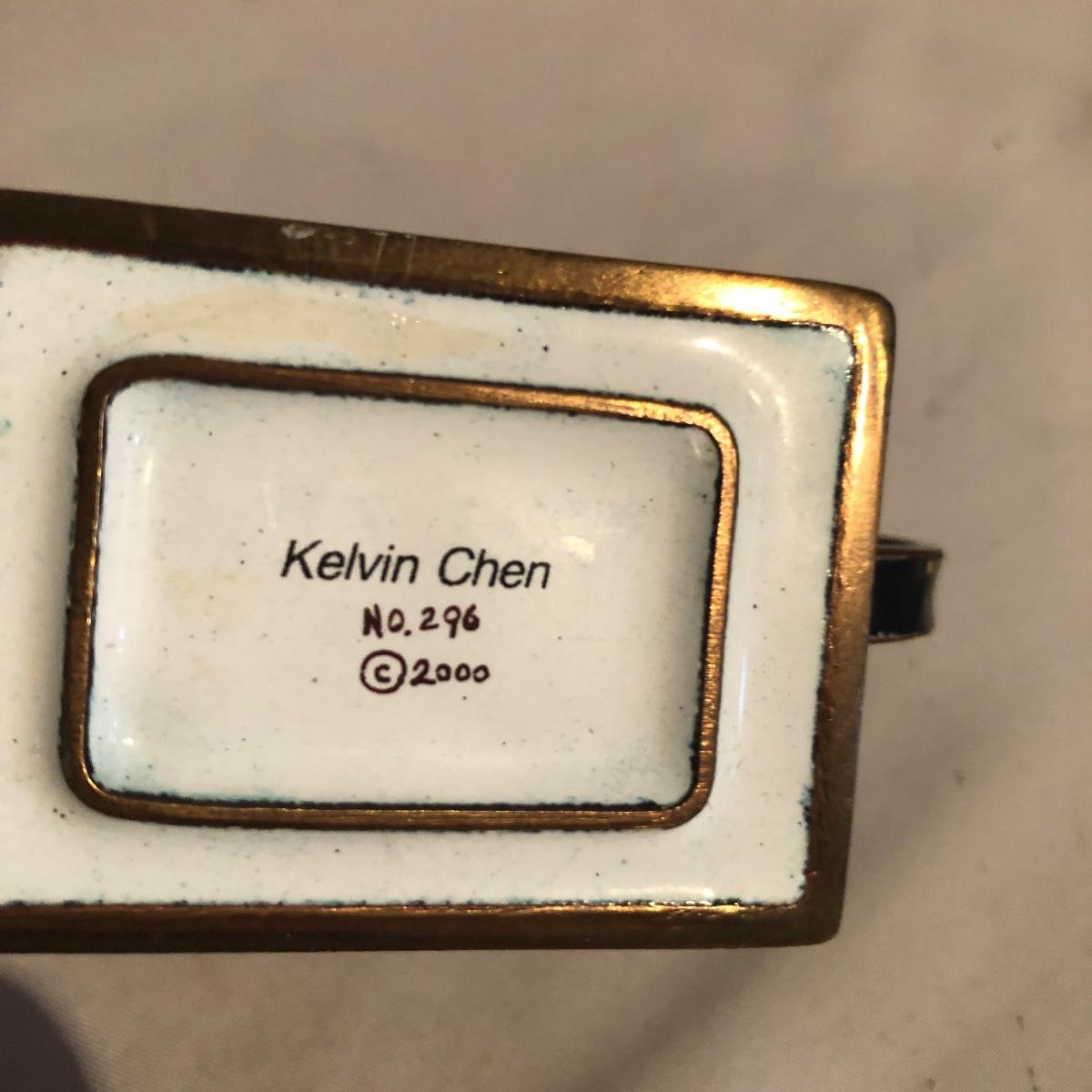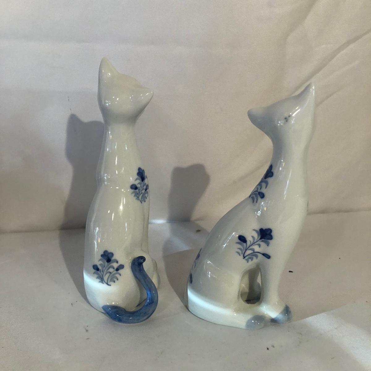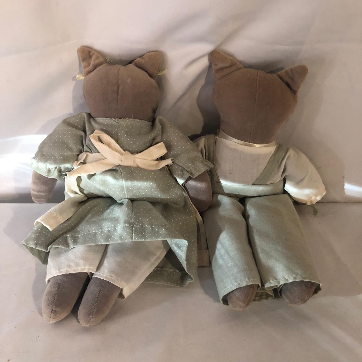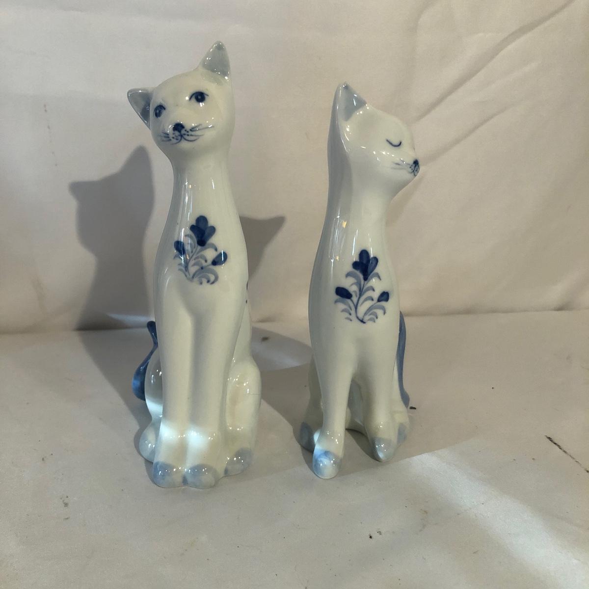 Lot includes a Kelvin Chen enameled teapot, two unmarked cat figurines, brass cat doorbell, metal cat hook, wooden frame, bag, two cat dolls and the book “ How to Tell if Your Cat is Plotting to Kill You”. Frame measures 6.5” x 8.5”.