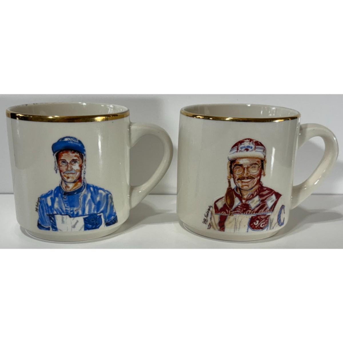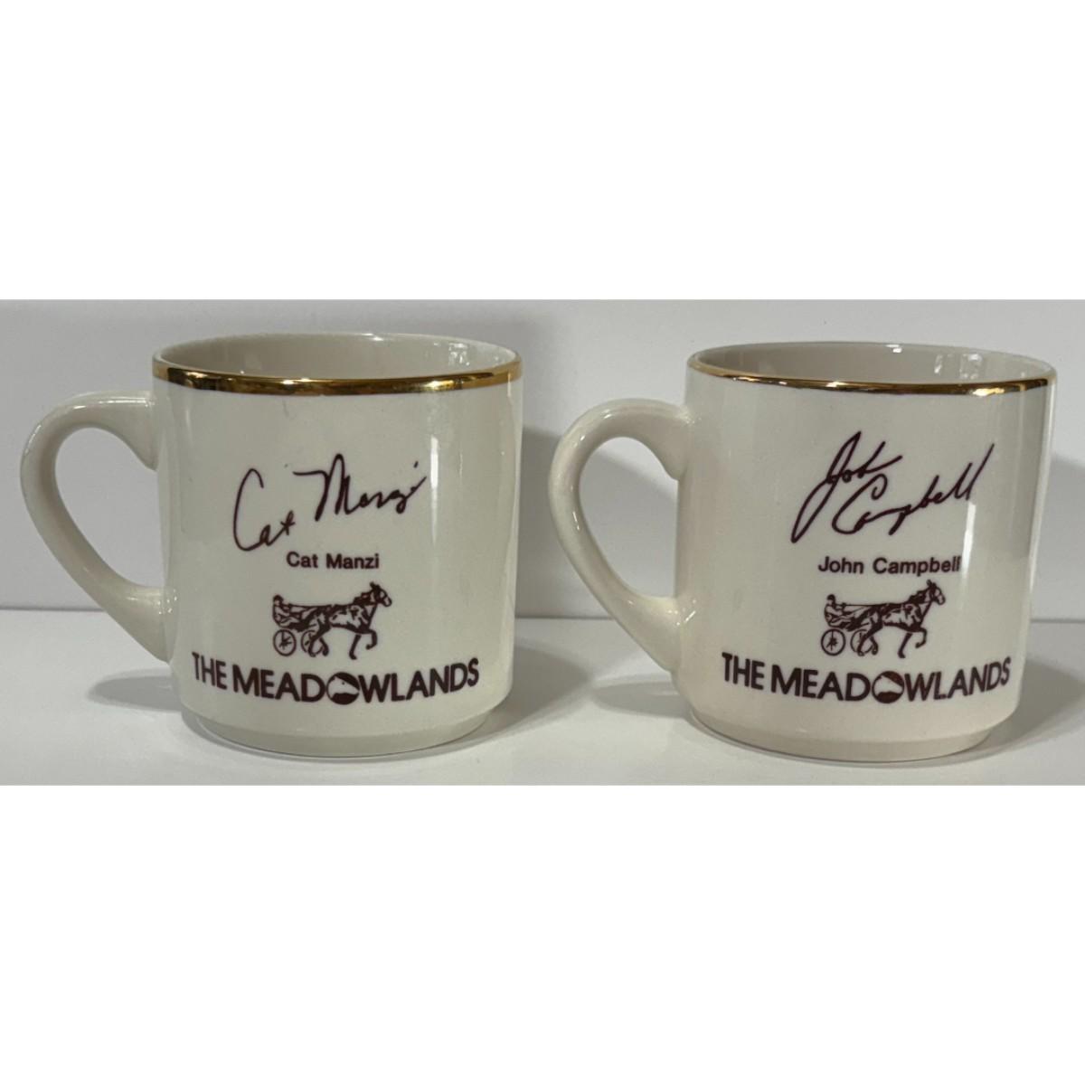Cat Manzi & John Campbell The Meadowlands Harness Racing Vintage Ceramic Mugs NJ