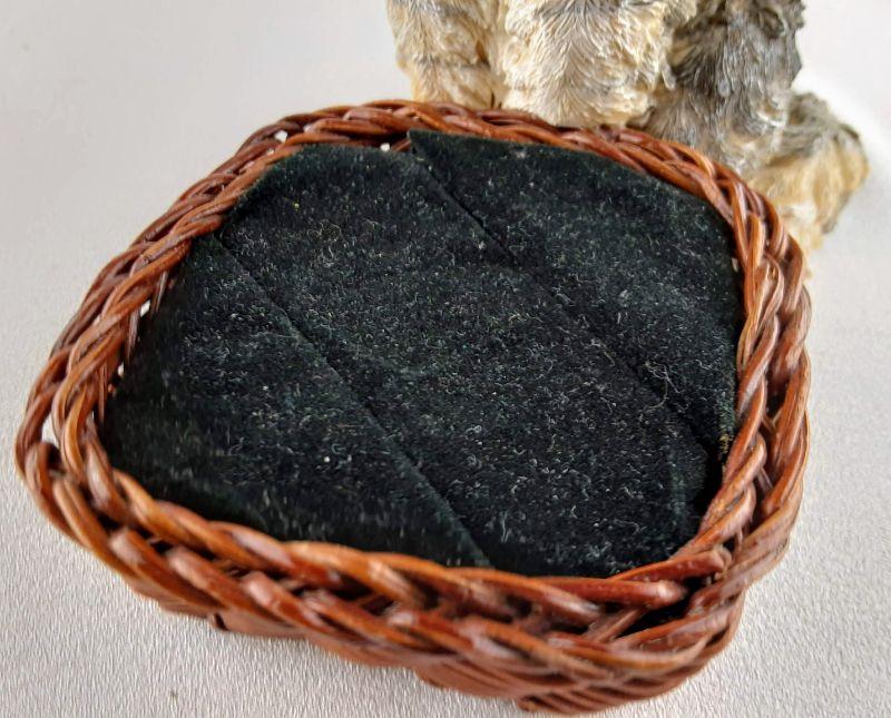 Cute cat attached to a padded basket designed to hil rings. Cat measures 4.5in x 4.5in