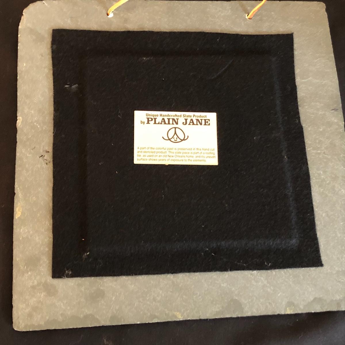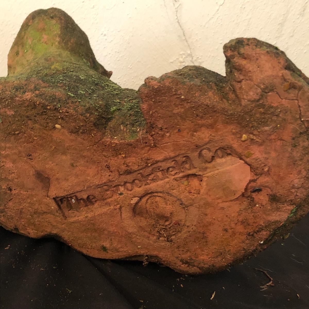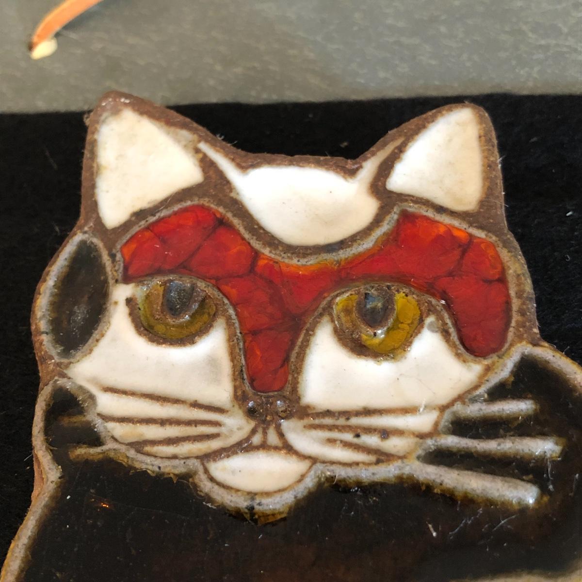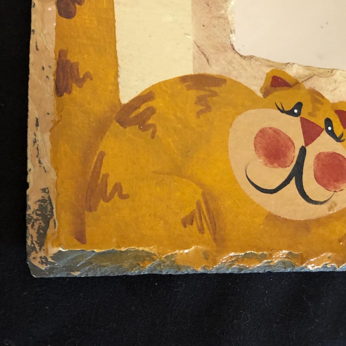 This lovely trio celebrating our feline friends includes a hand cut ,stenciled mirror (leather hanging strap needs replacing, easy fix), a pottery decorative cat and a cat statue from Brookfield Co. that would look great indoors or out. Statue has a hairline crack on its base, therefore hidden from view and it appears to be made out of stone. It measures approximately 14” x 8” x 9”.