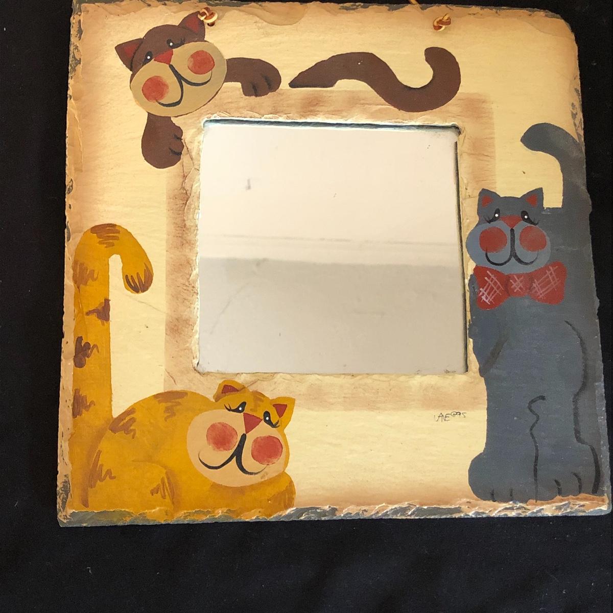 Cat Statue, Hand Cut Slate Mirror & Pottery (D-RG)