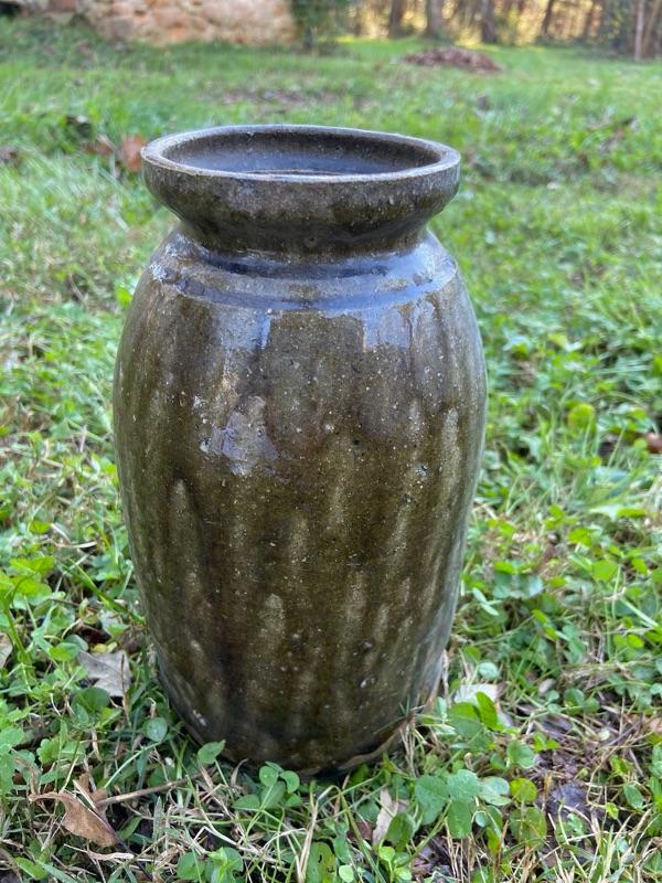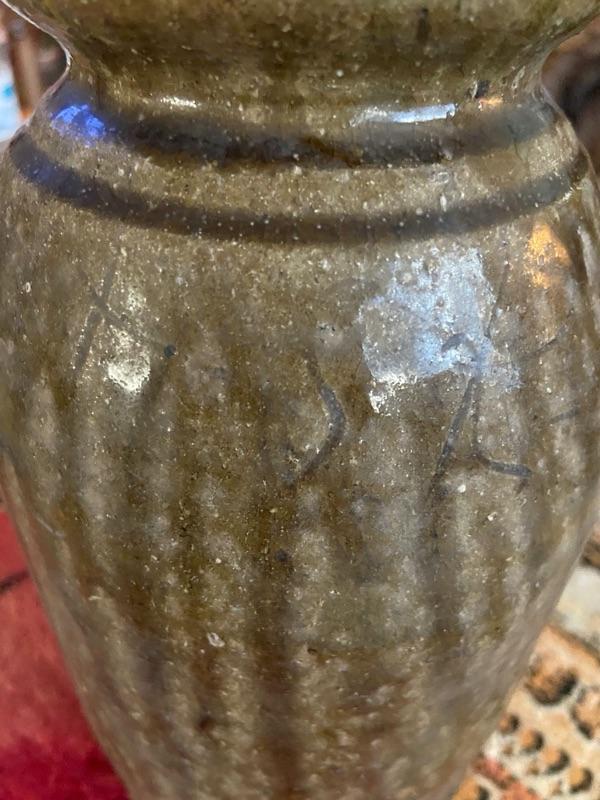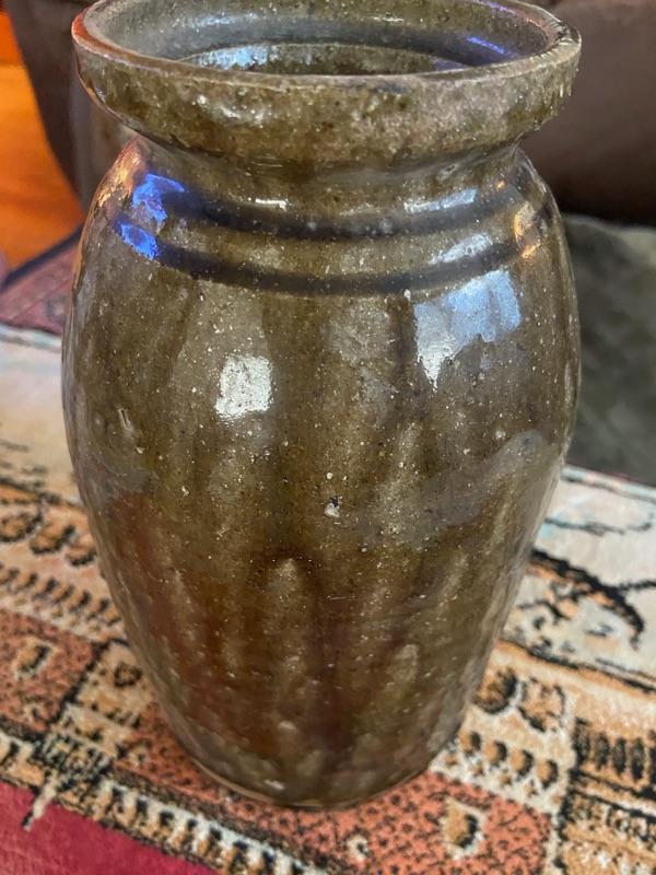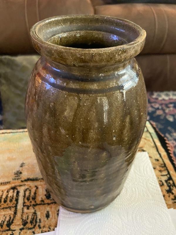 Unmarked with the common Ritchie mark. Pottery is in the classic Thomas Ritchie style and glaze and was discovered along with the Daniel Seagle piece at a China Grove estate in a home built in the 1930's. Look closely and you will see a handwritten signature or mark in the photos. Approximately 9 1/2" tall.