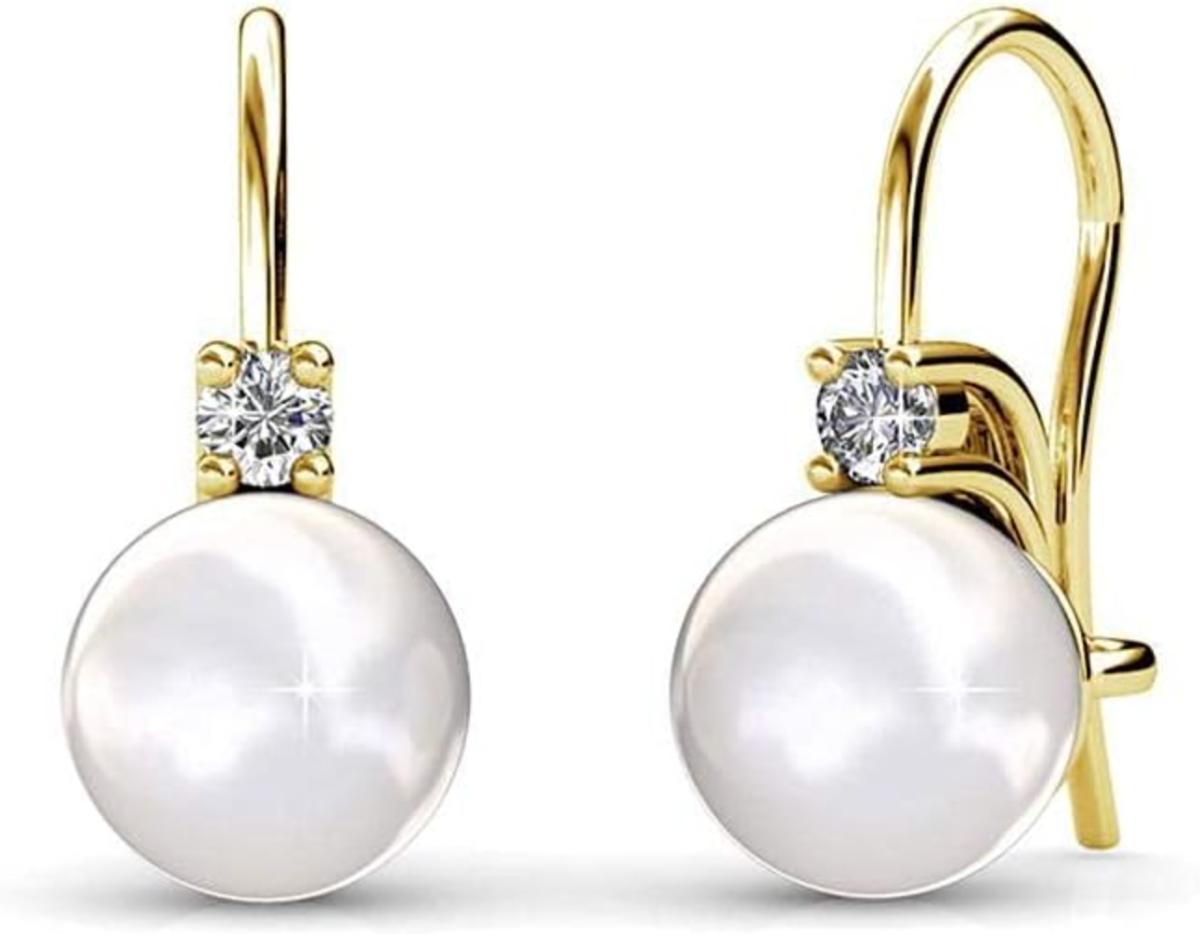 Cate & Chloe Cassie 18k Yellow Gold Pearl Drop Earrings For Women | Women's Drop & Dangle Earrings With Crystals, Classic Pearl Earring Set, Fashion Earrings For Women, Hypoallergenic Earrings