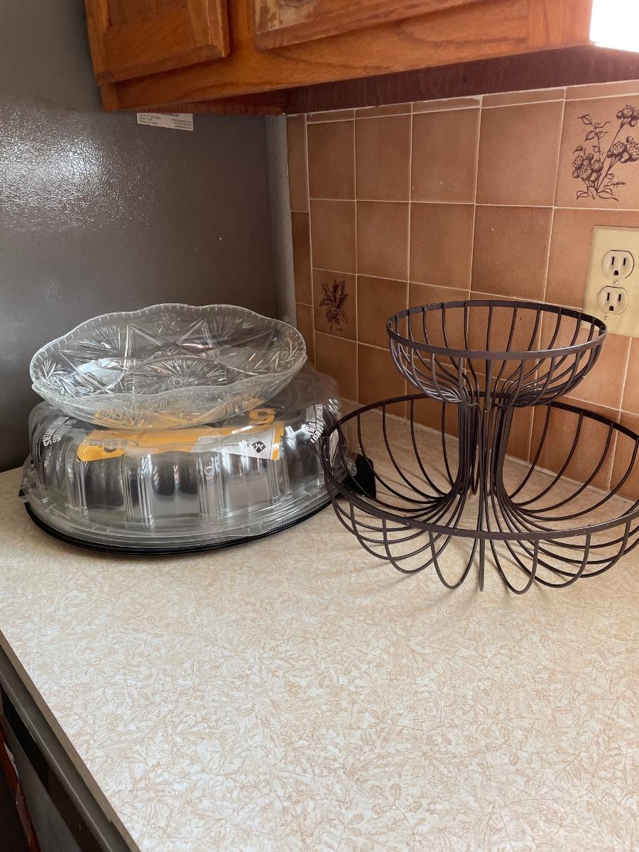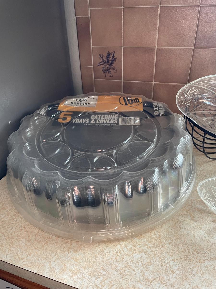 CATERING TRAY, SERVING BOWLS AND FRUIT BASKET