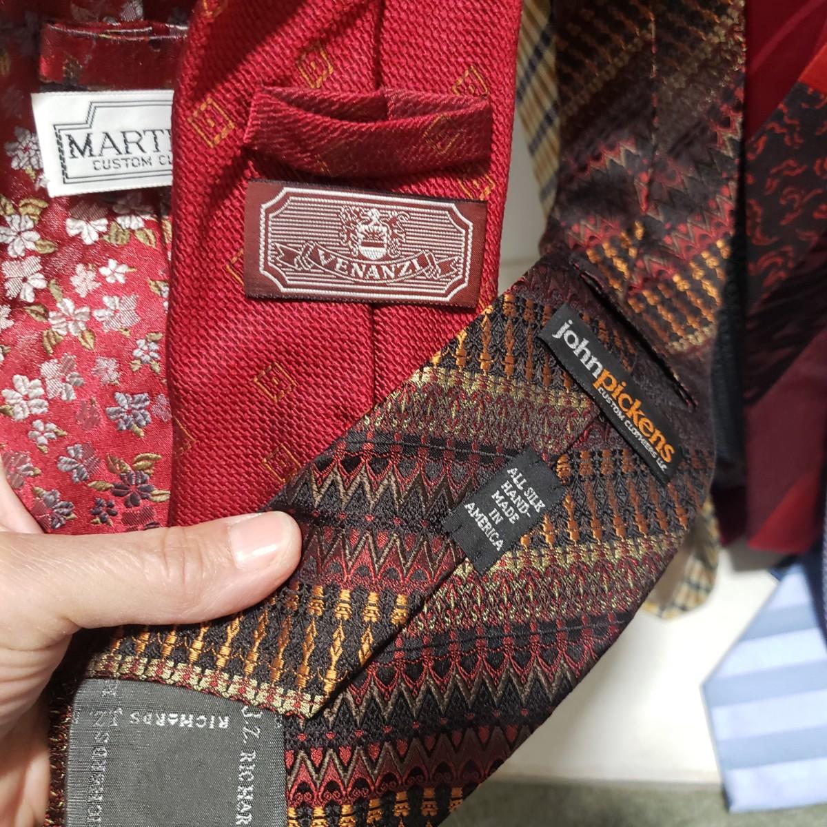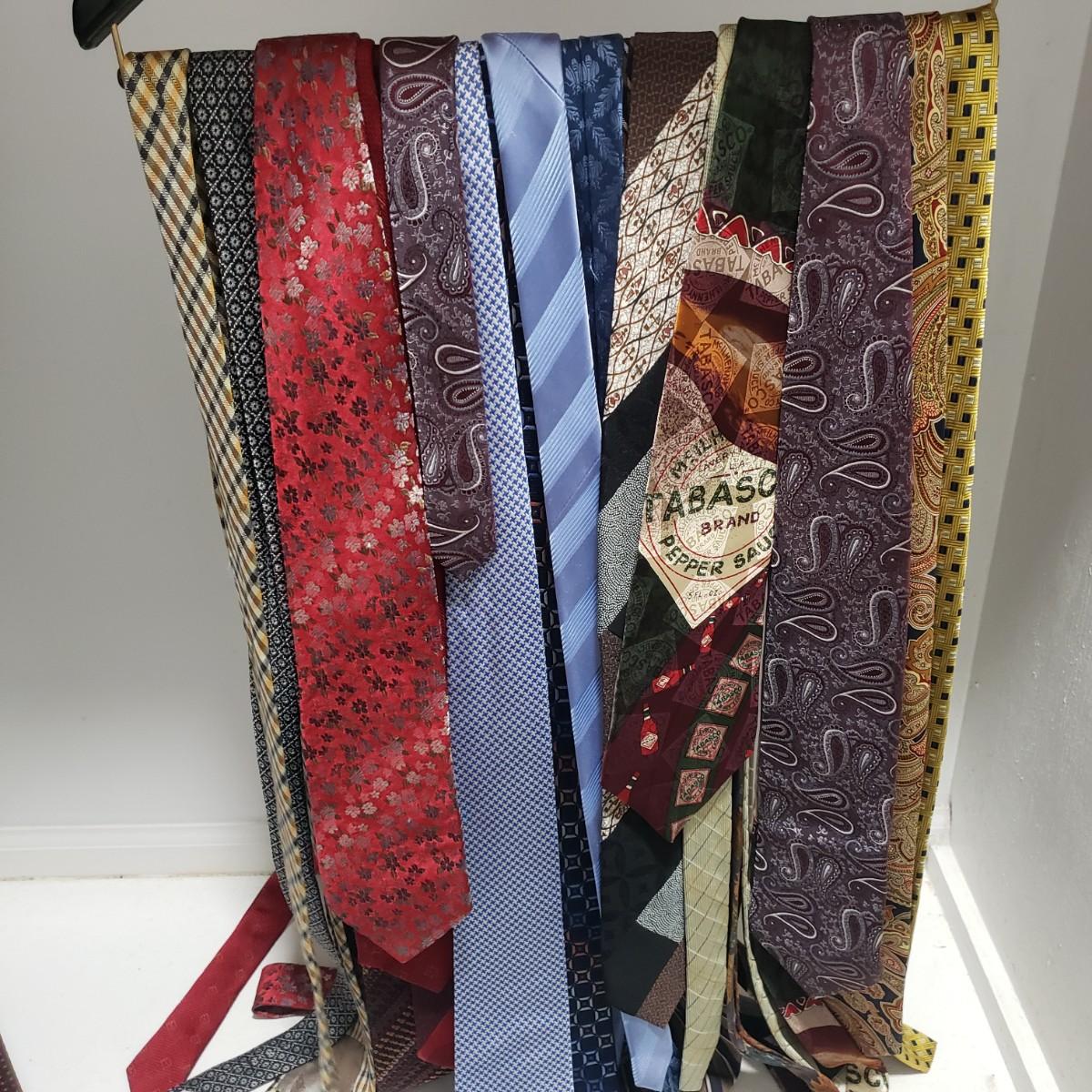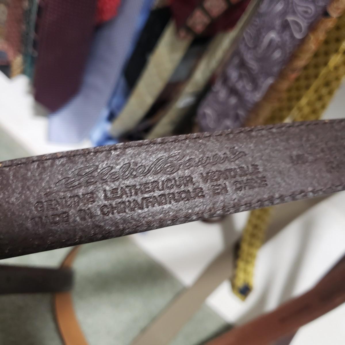 This lot contains leather and canvas belts with lots of ties! The belts measure 38"-42", see pictures. The ties are mostly silk. See pictures for details.