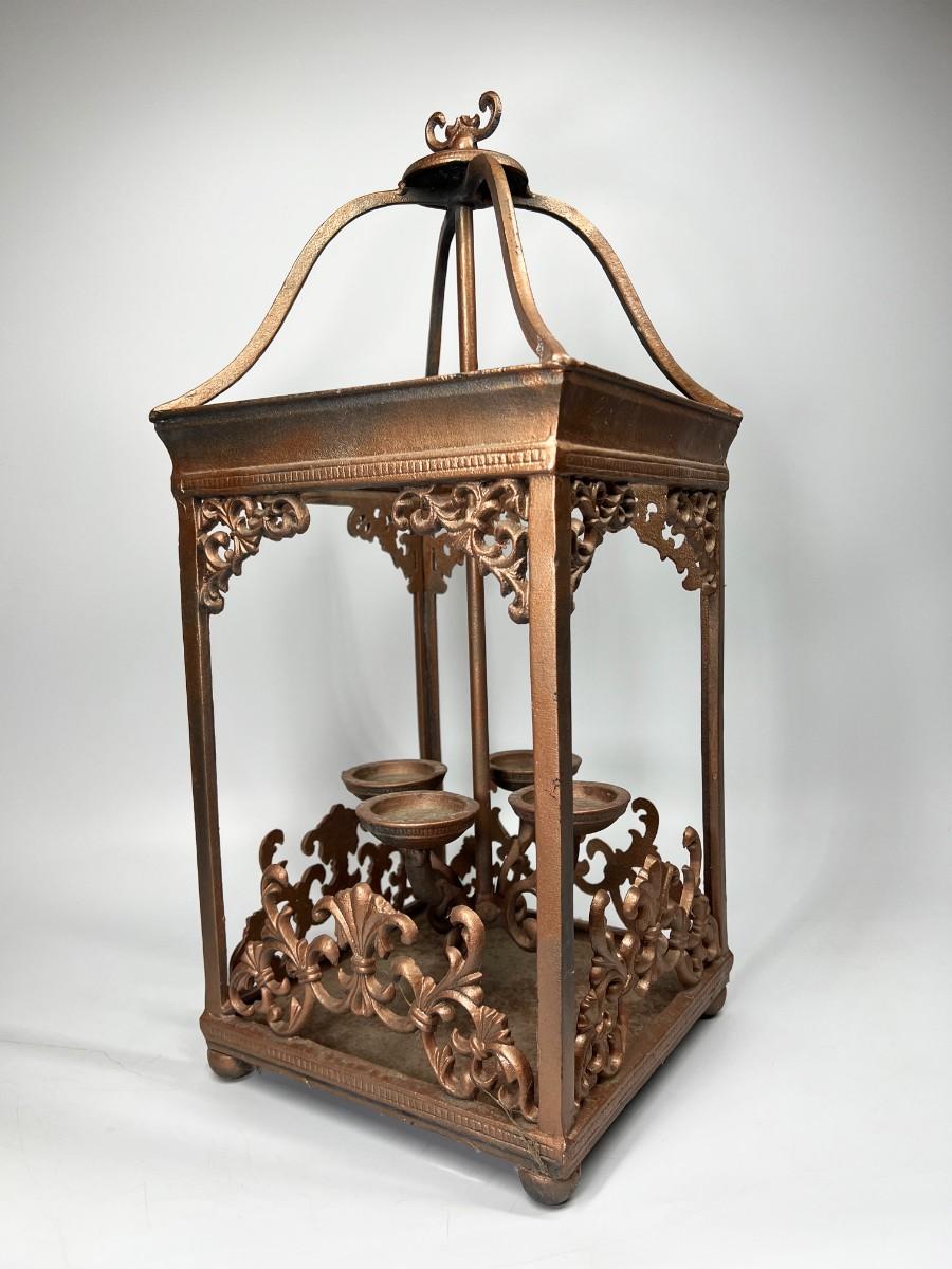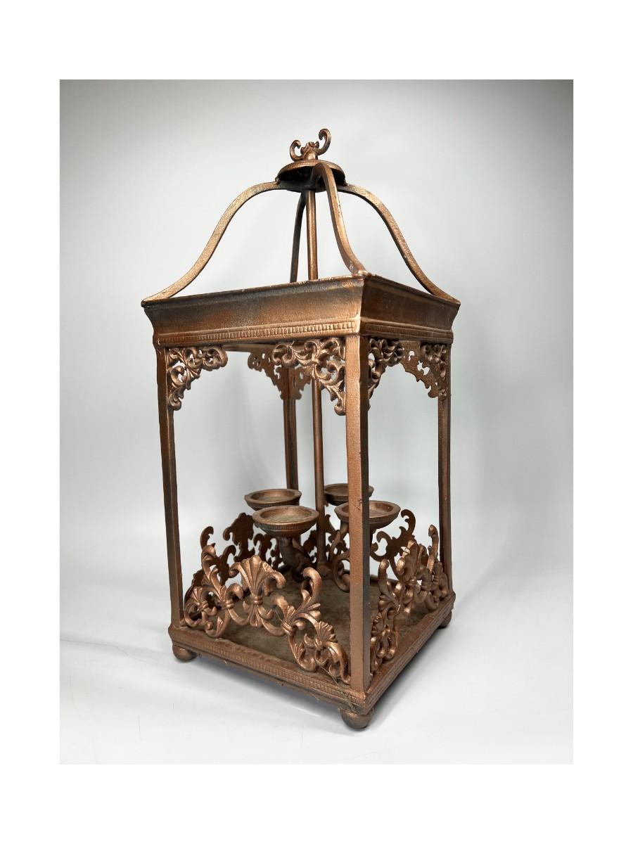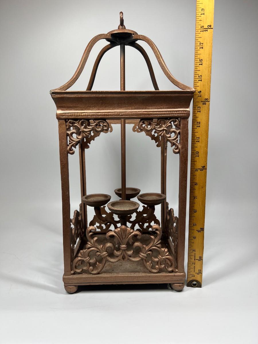 Cathedral Style Indoor Outdoor Brass Metal Chandelier Candle Holder, there is no significant damage to the lantern and is in good useable condition. Check pictures for more details and for sizing.