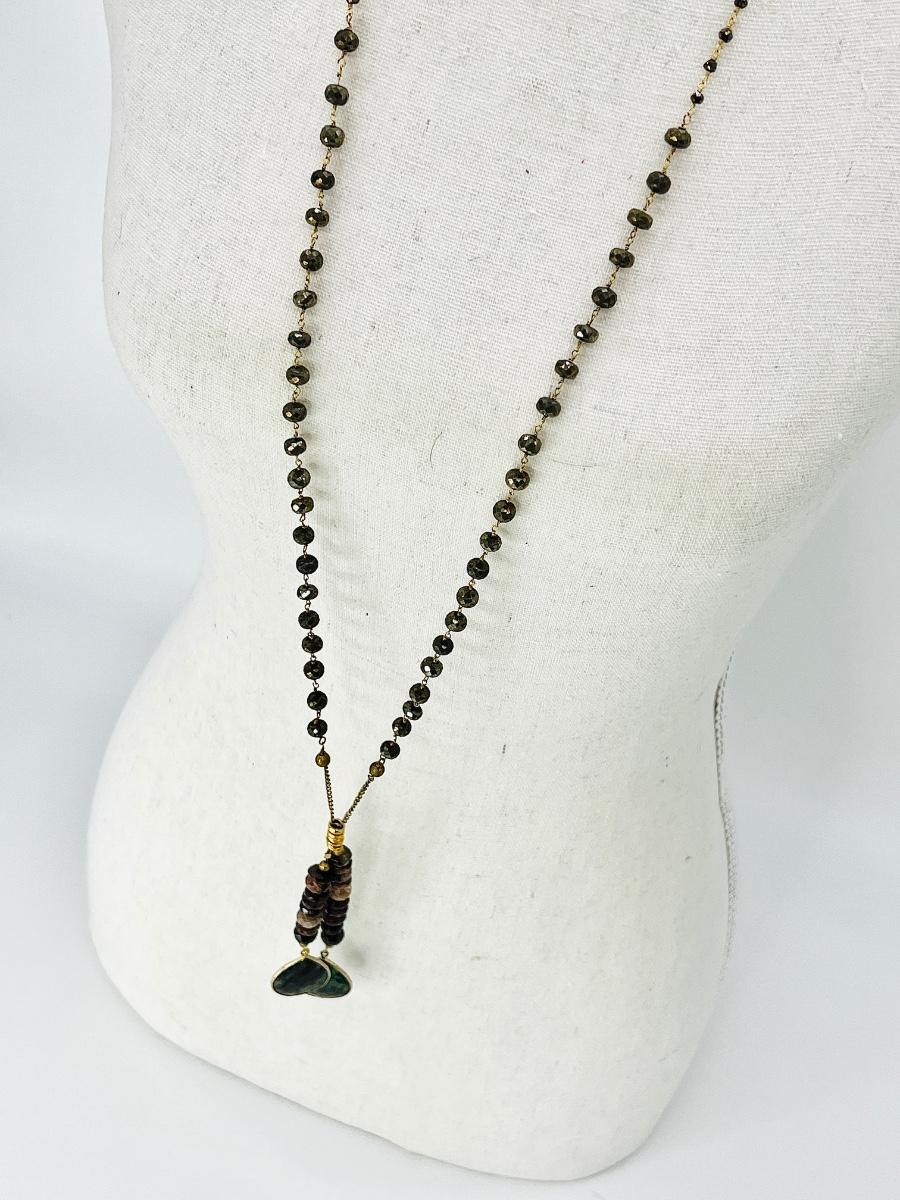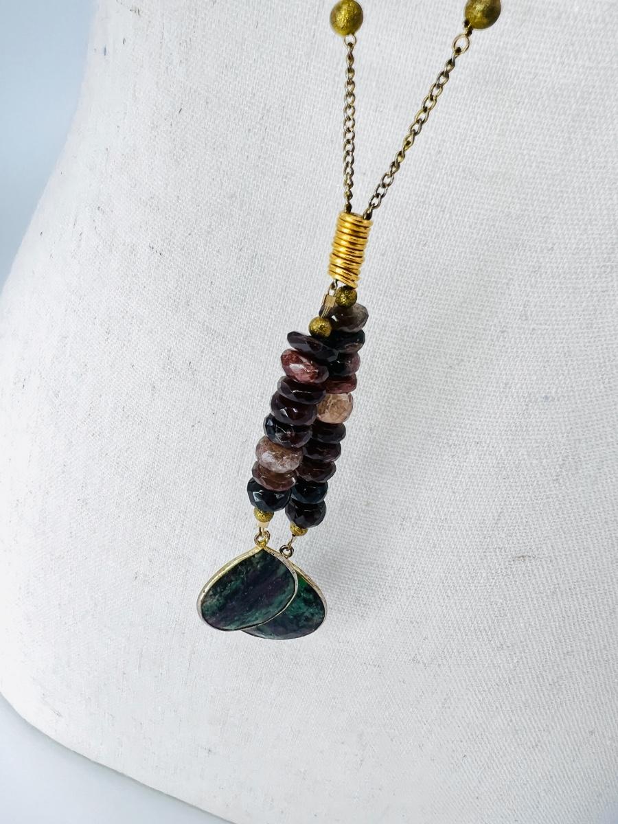 Fashion ~ Long Green / Brown gemstone necklace ~ Approximately 38” ~ Estate of Elizabeth Kinsley