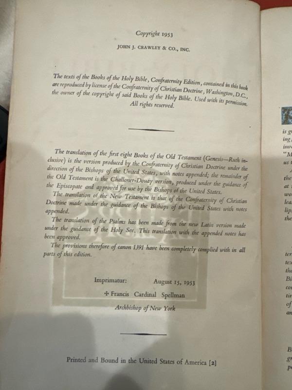CATHOLIC FAMILY EDITION OF THE HOLY BIBLE JOHN J CRAWLEY & company NEW YORK 1953