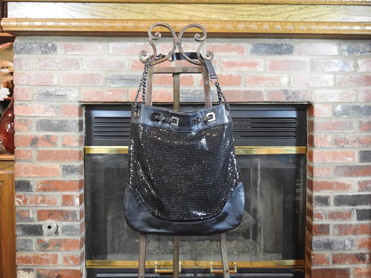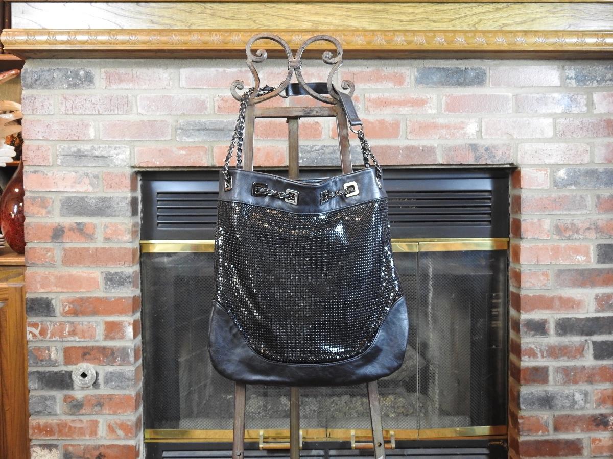 Beautiful Catto black shiny sequin handbag. Has changed shoulder strap with faux leather handle. No outside pockets but inside has two zipper compartments