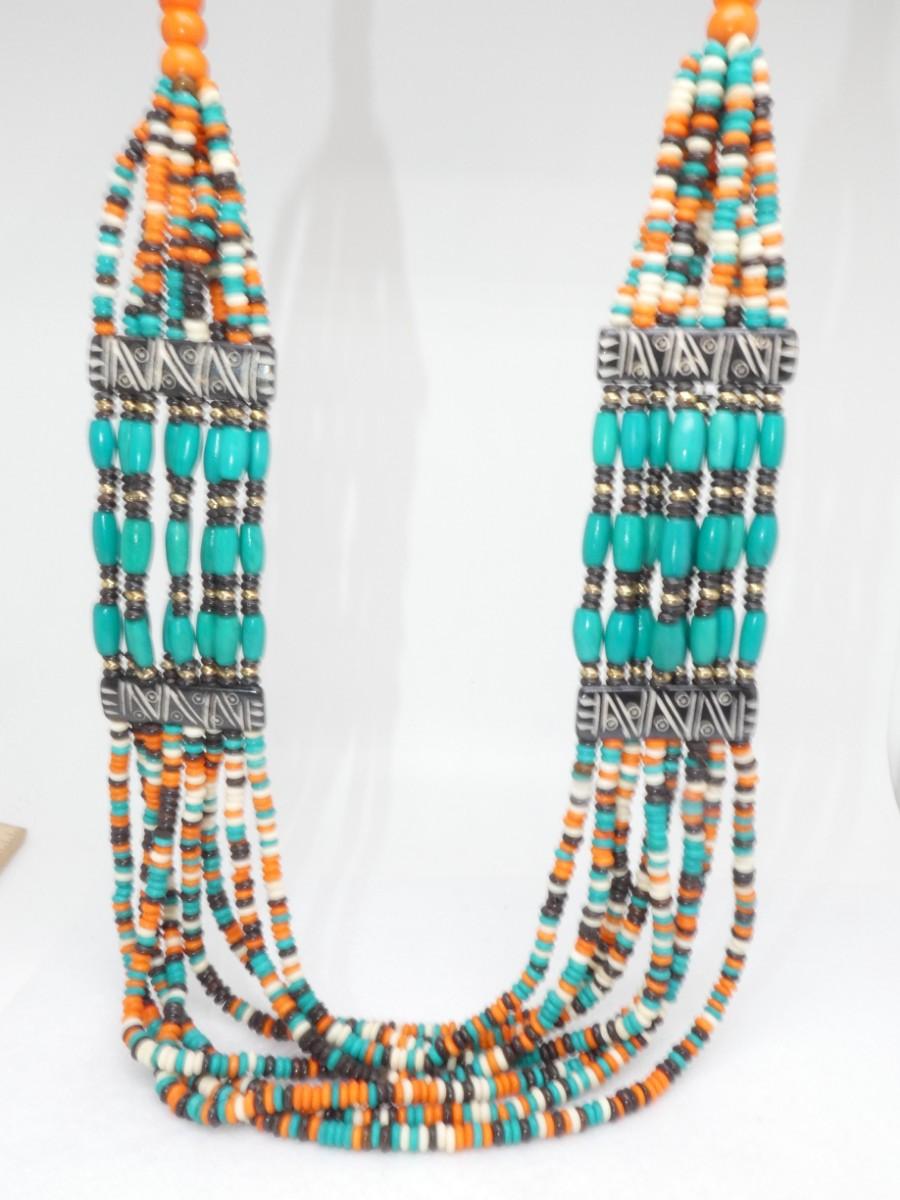 CATO Tribal Necklace, Fall Turquoise, Orange & Black Beads