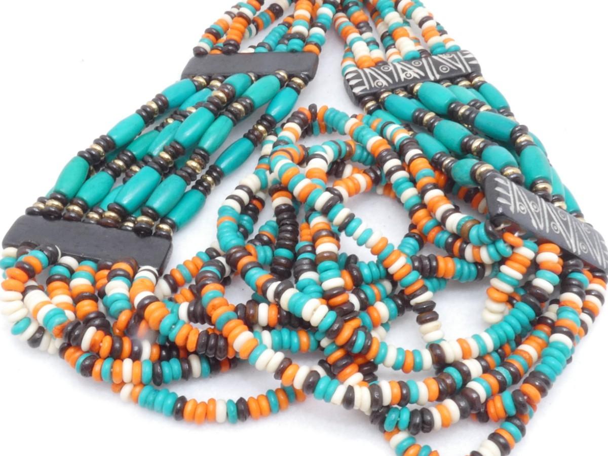 CATO Tribal Necklace, Fall Turquoise, Orange & Black Beads