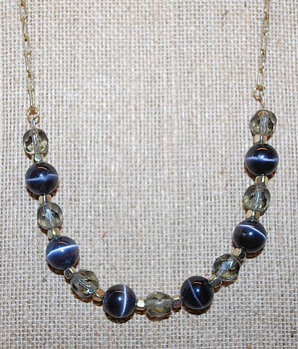 "Cat's Eye Marble" NECKLACE with Prism Stone Accents and Lobster Style Clasp 18" L