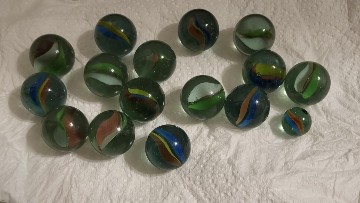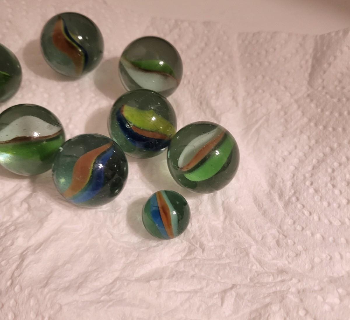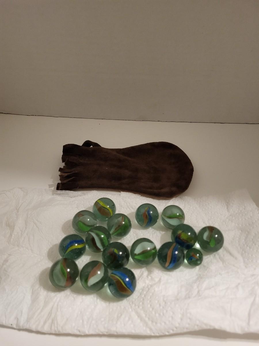 CAT'S EYE MARBLES WITH A LEATHER POUCH