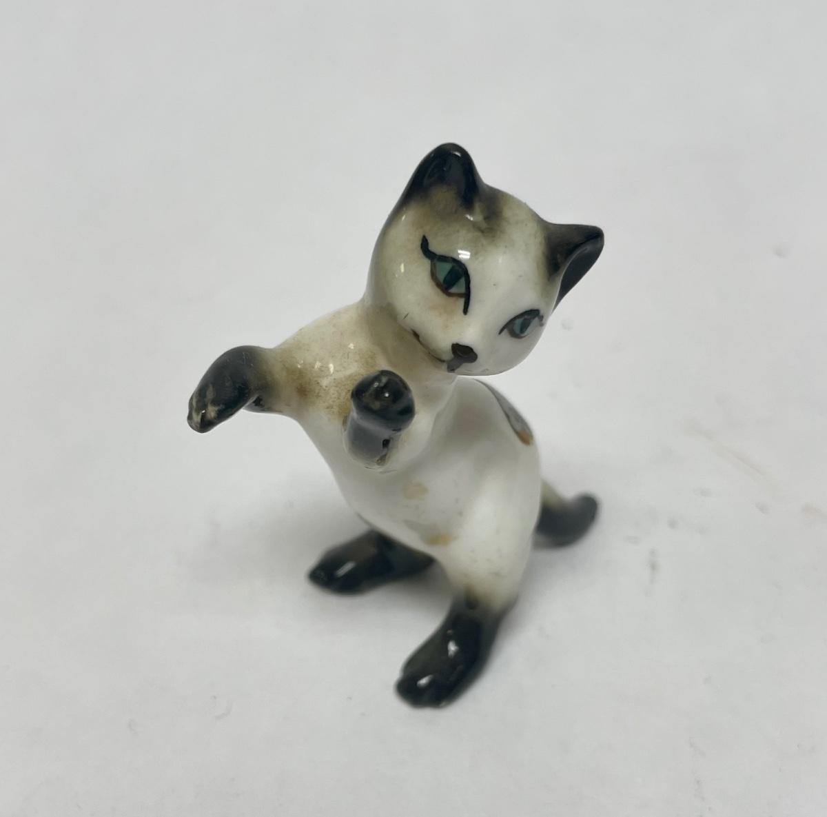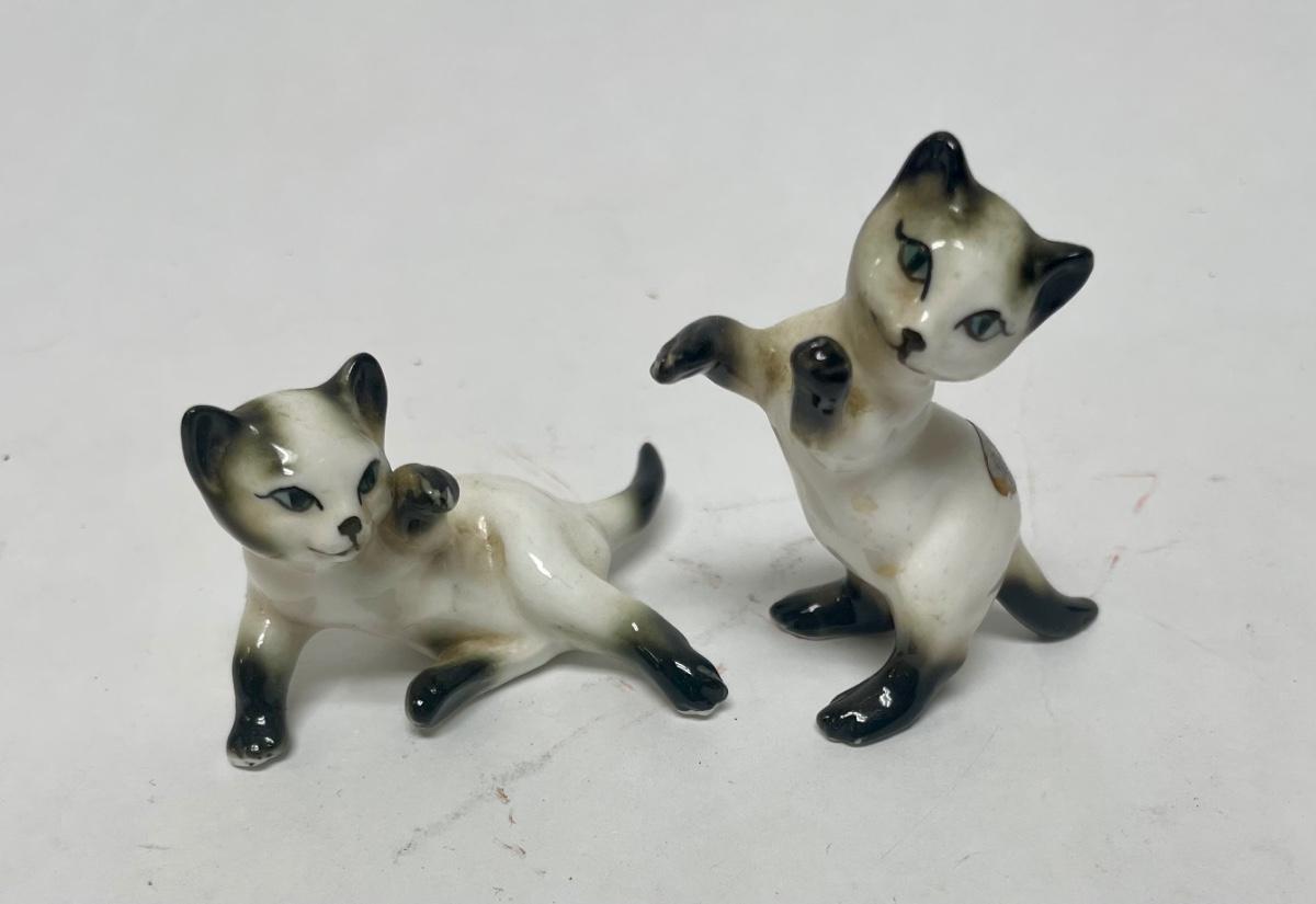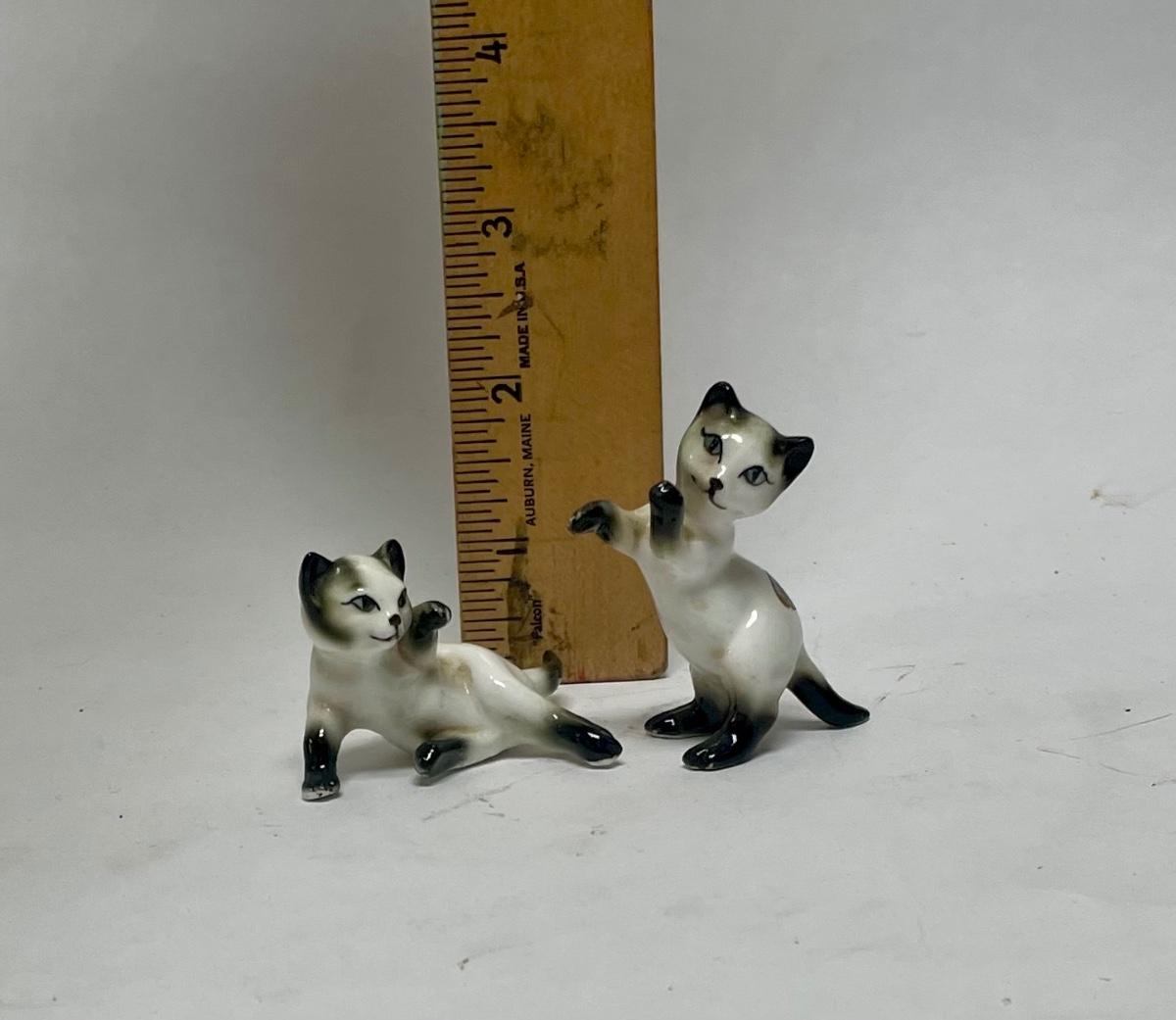 Vintage Pair of Rare Ceramic Porcelain Miniature Siamese Cat Figurines Russian?