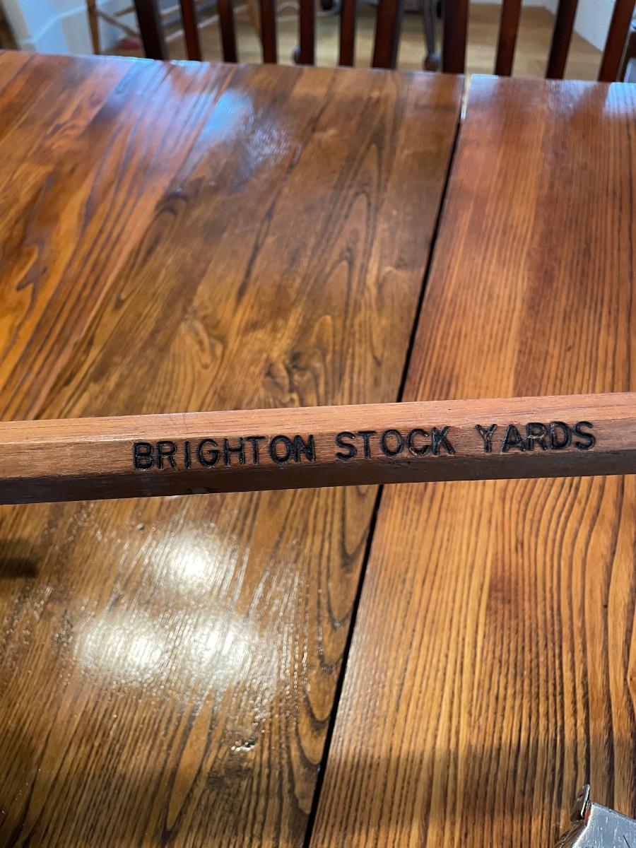 Very cool old cane from the Brighton Stockyards. Measures 37.5” long.