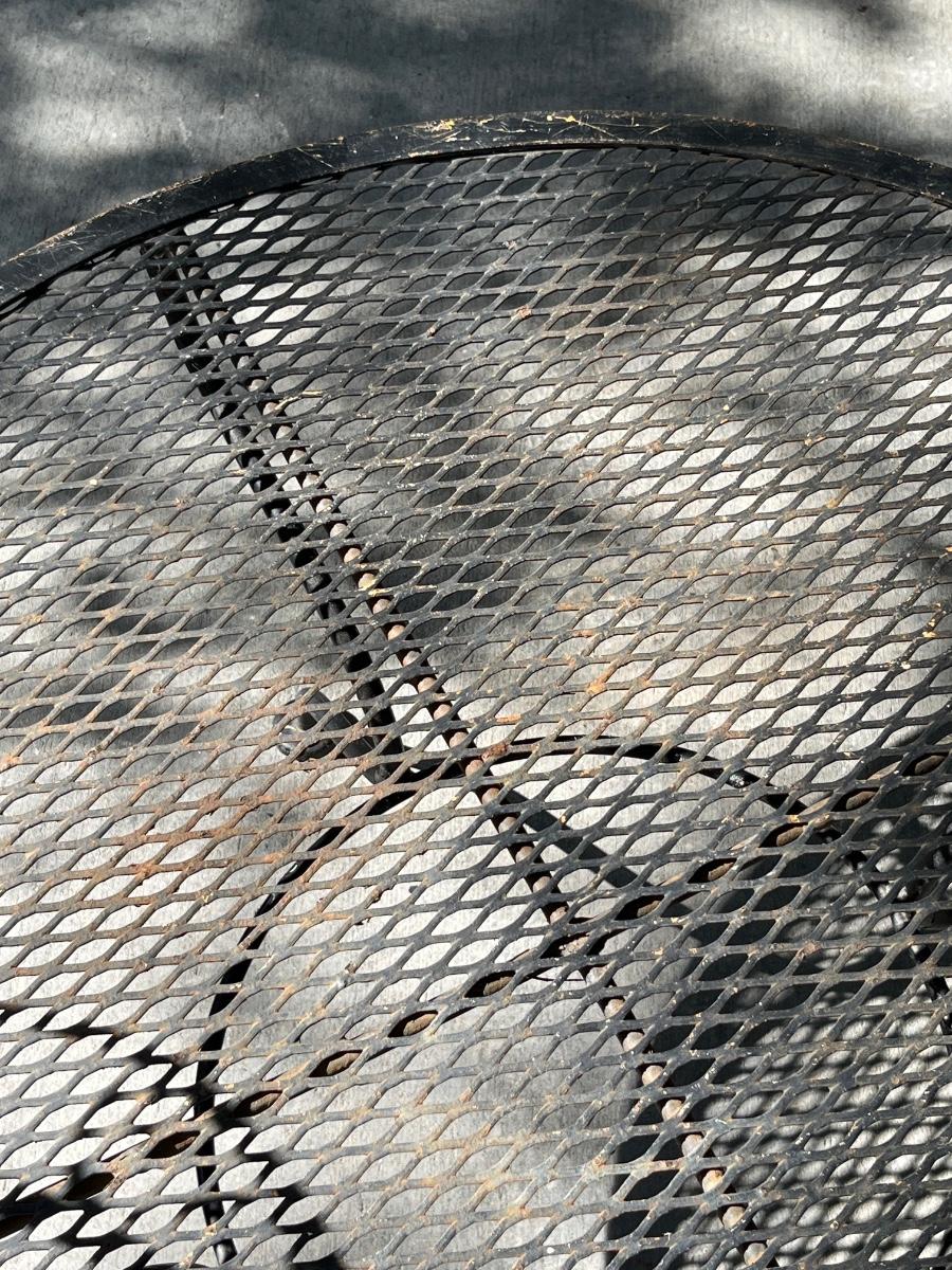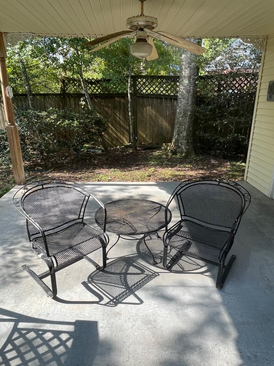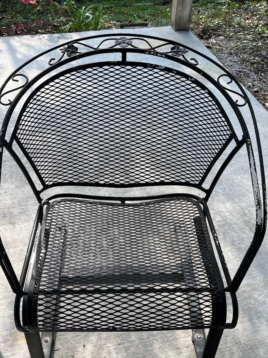 Table = 16” H x :30” round ~ Chairs = 31” H x 23” W x 27” D - porch kept ~ Some rust ~ paint chipping