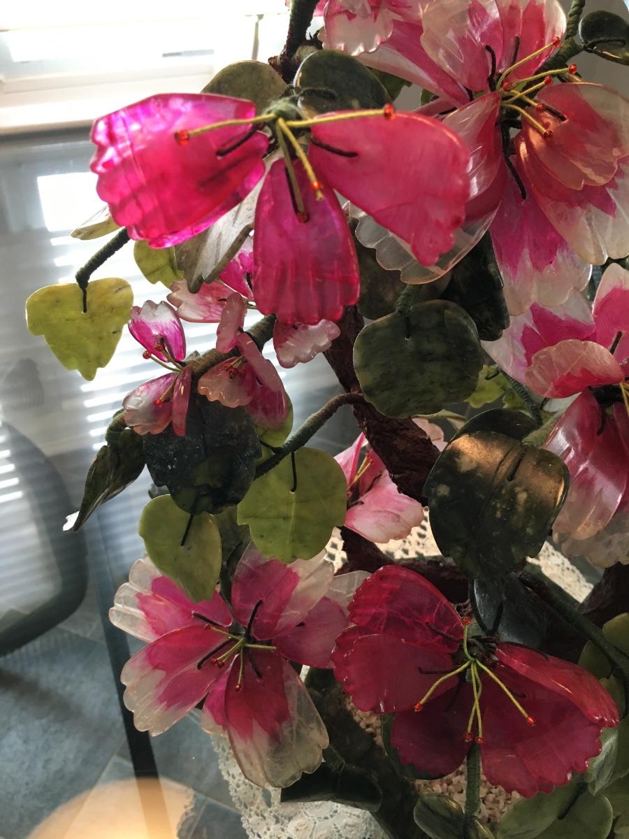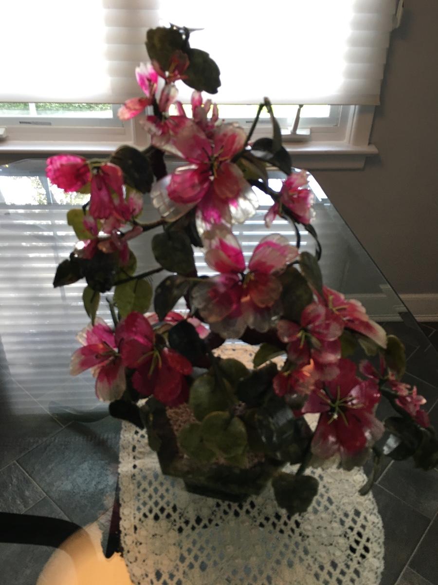 Lovely colorful glass flowers in a marble base. Looks to be in excellent condition.