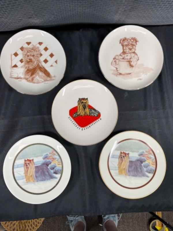 Set of 5 Yorkie dog plates. Good condition. Two are the same. #029-0035