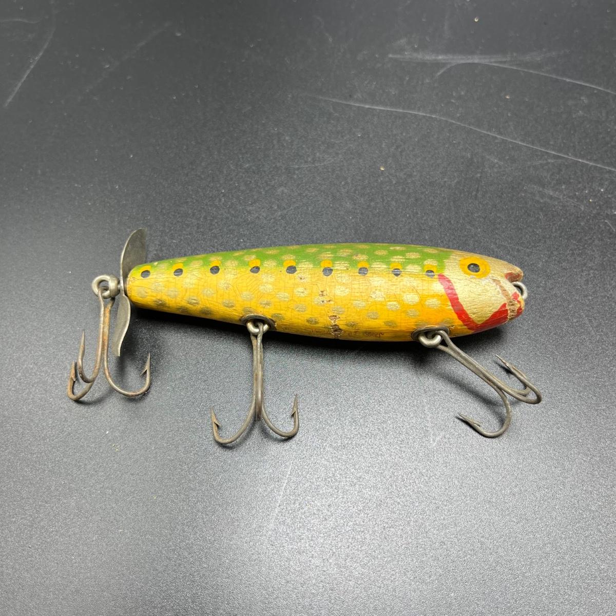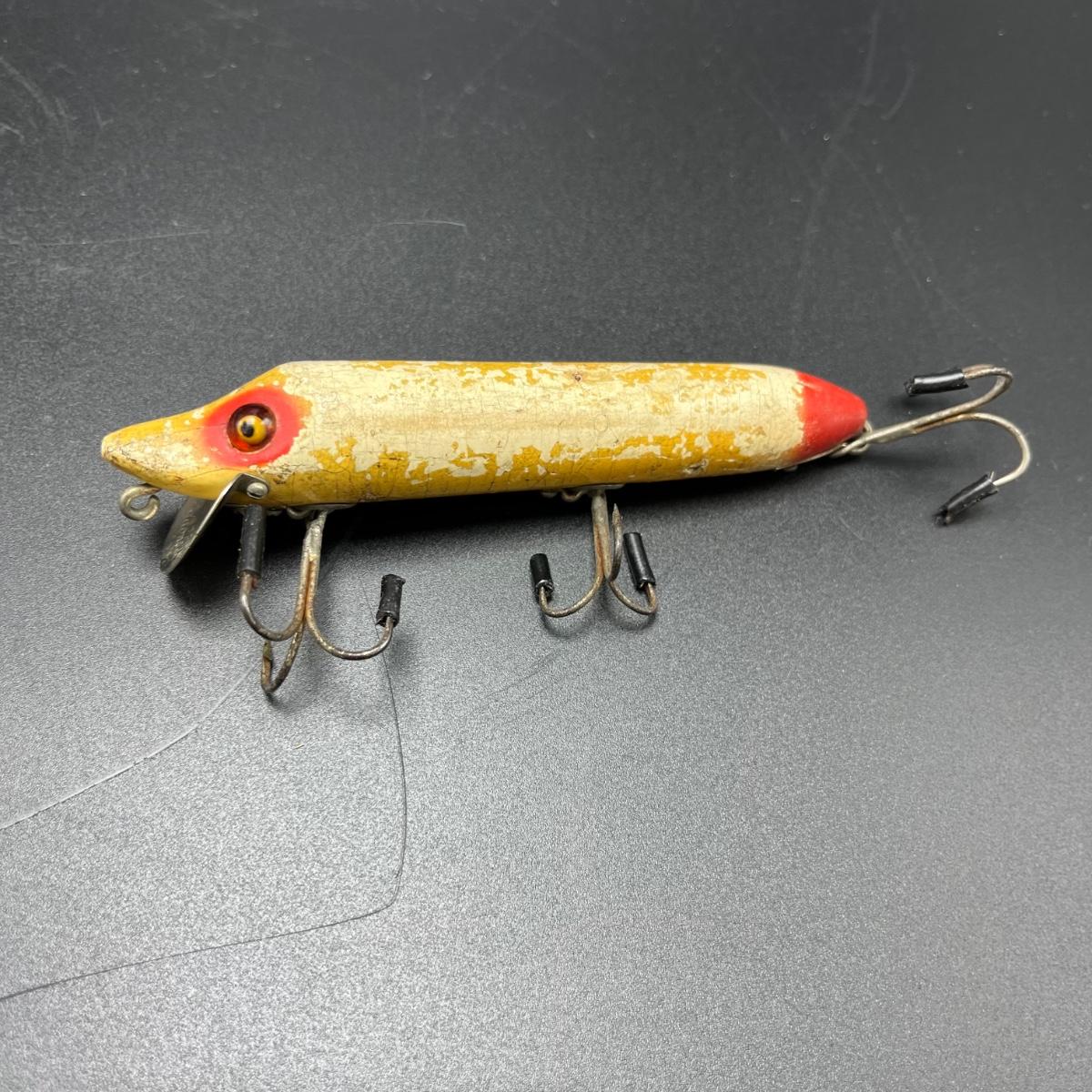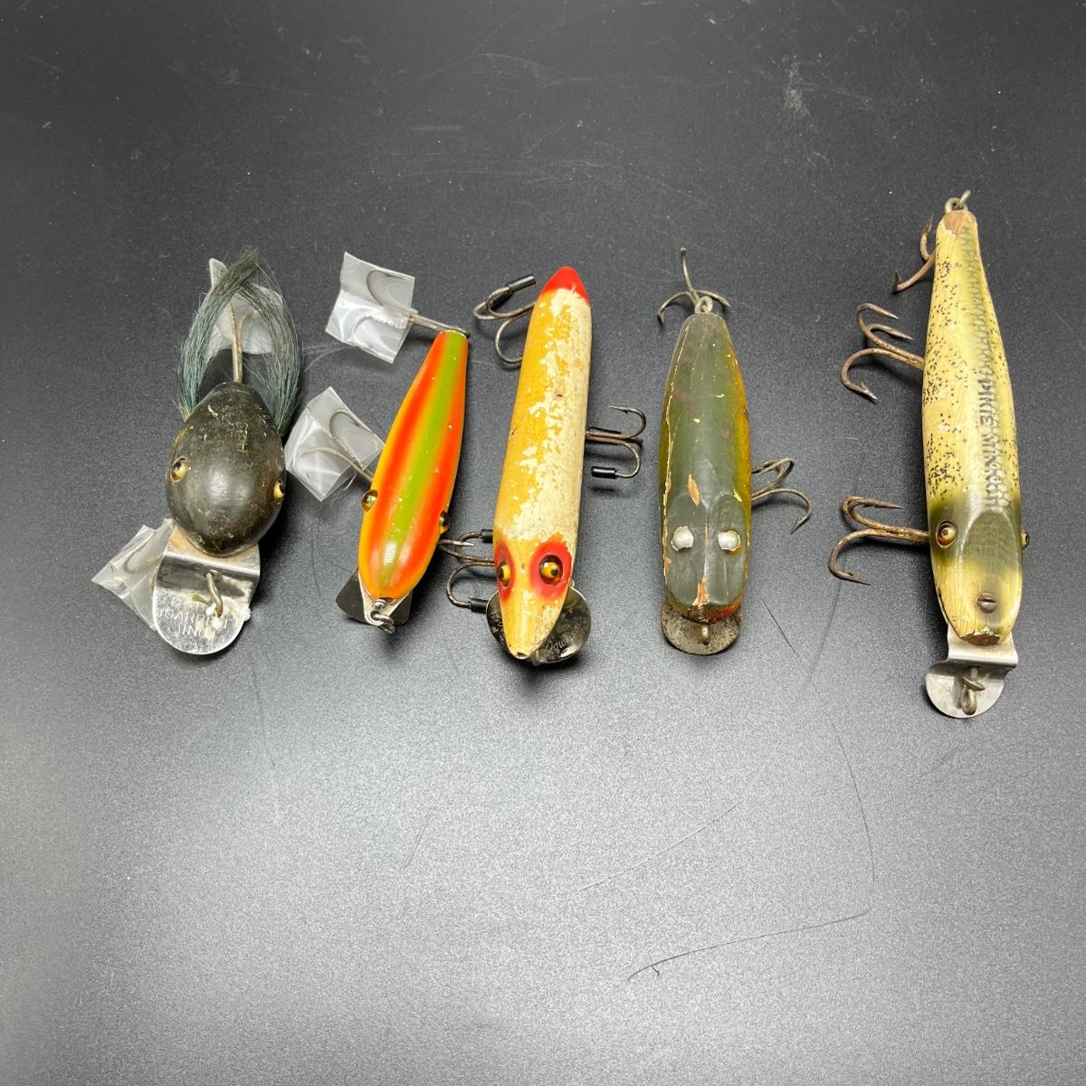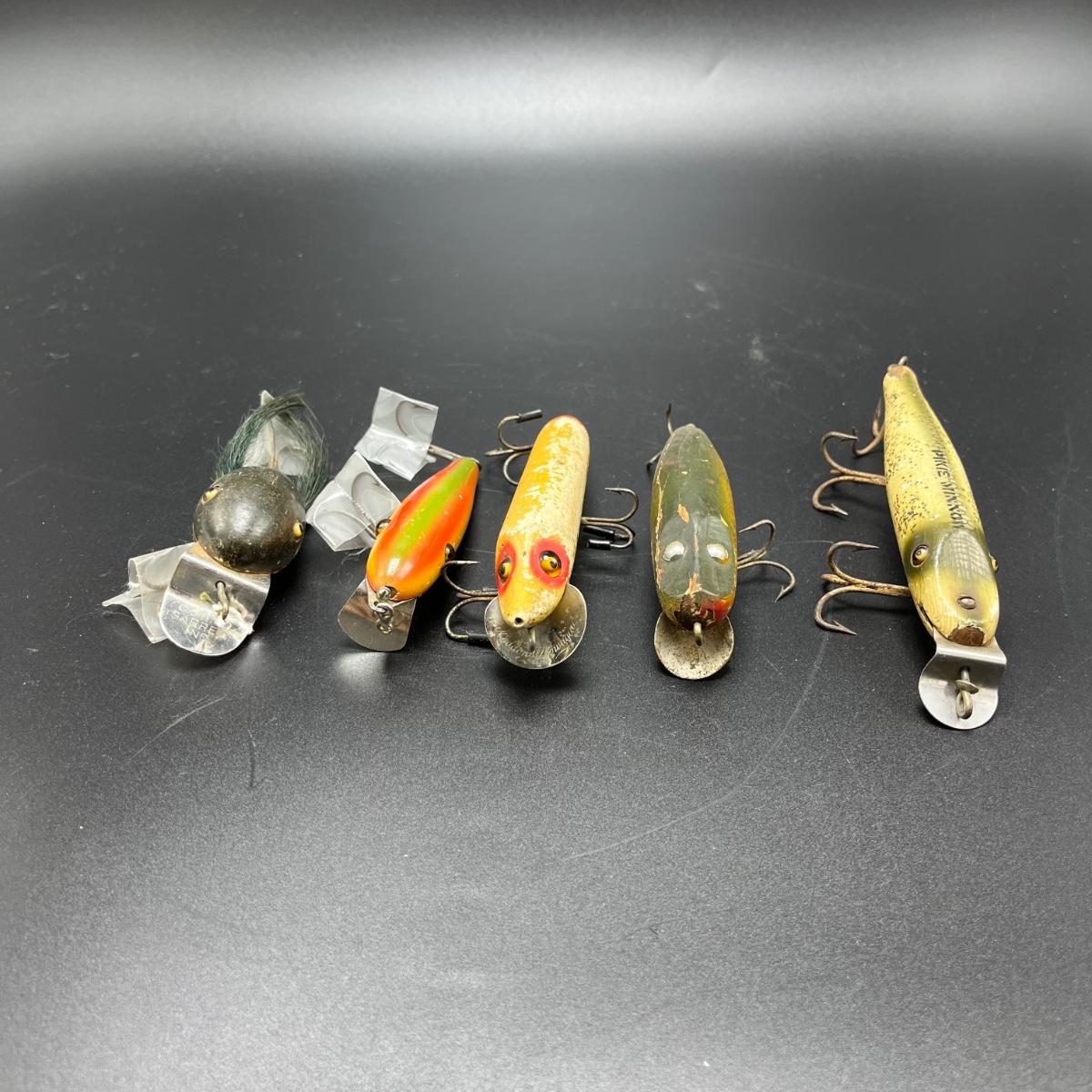 Lot includes three CCB & Co. lures, Paw Paw lure, Heddon Dowagic lure and a Pfeugler Palomine lure. Longest lure body measures 4.5” long.