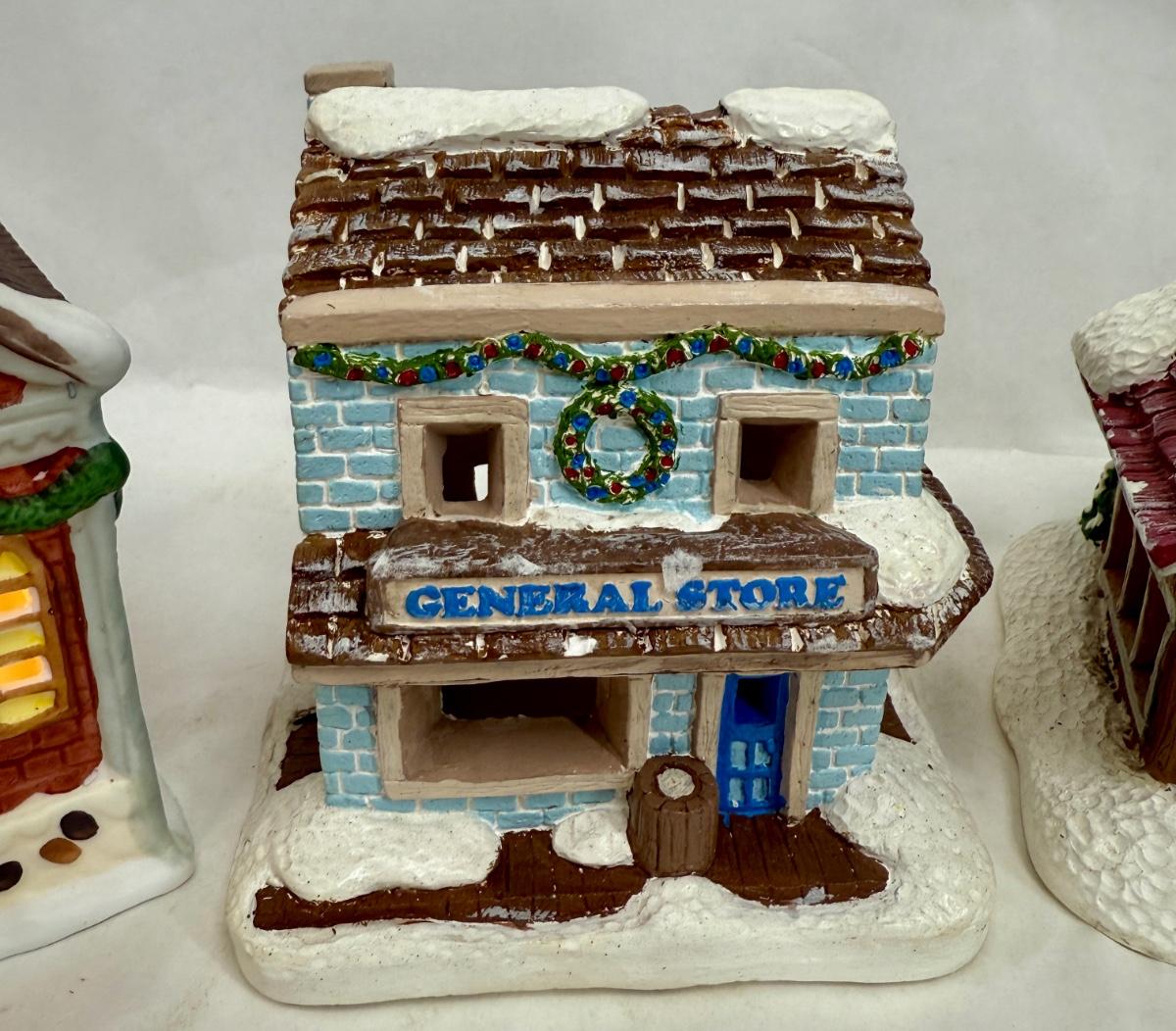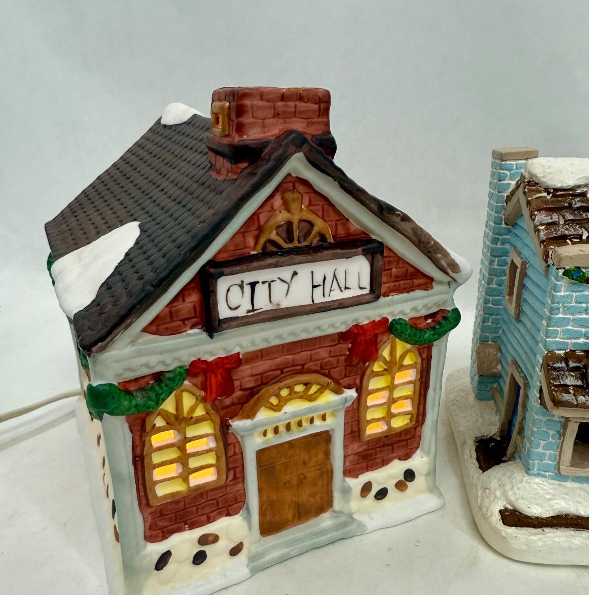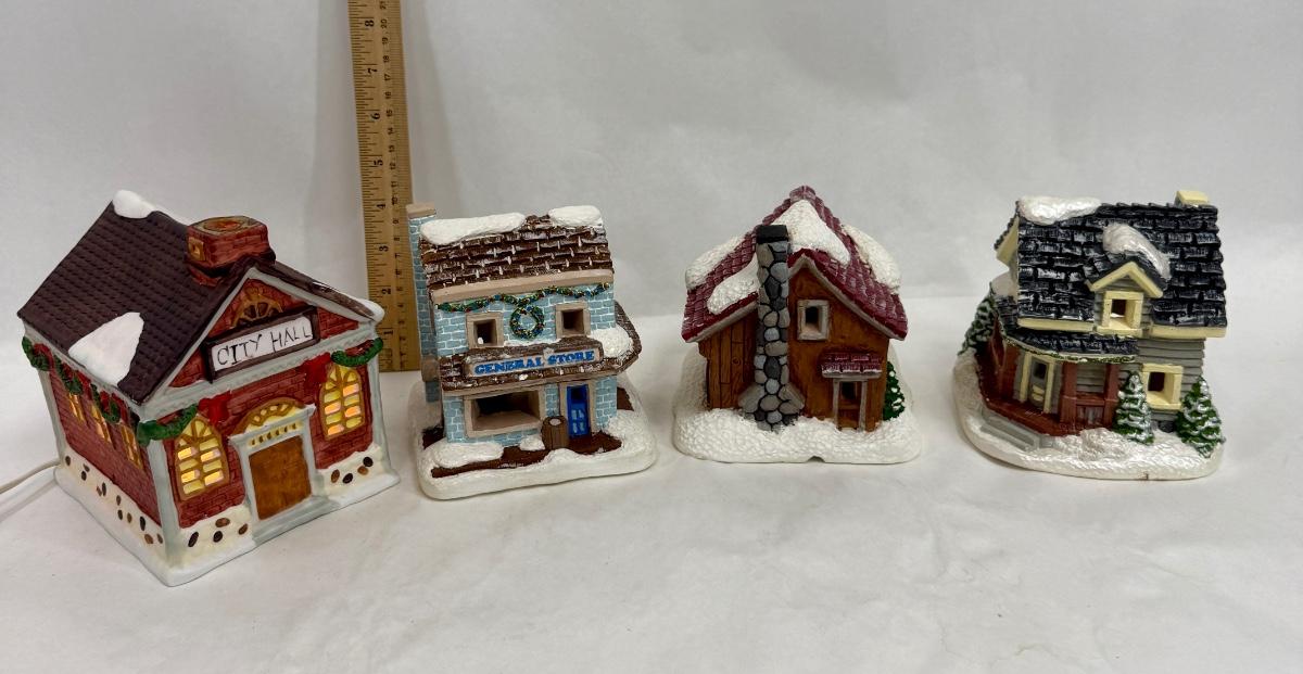 Hand-painted Ceramic Houses for Miniature Christmas Village Display