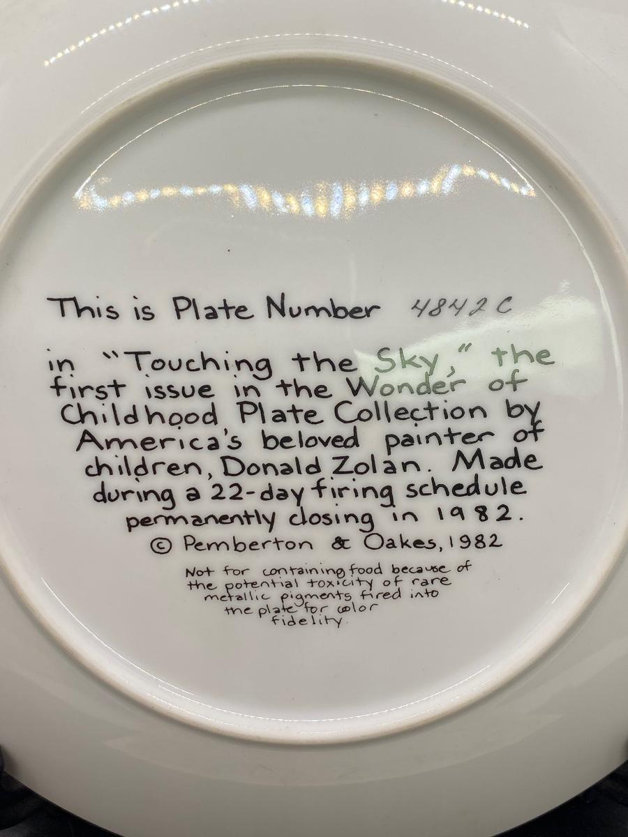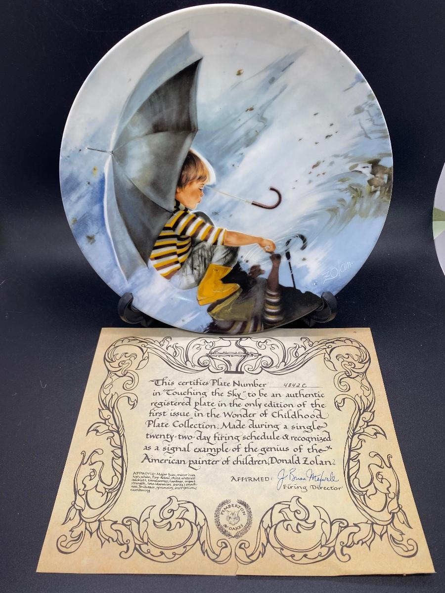 "Touching the Sky" by Donald Zolan. Limited edition numbered collector plate. Released in 1982. Good condition, with box and COA.