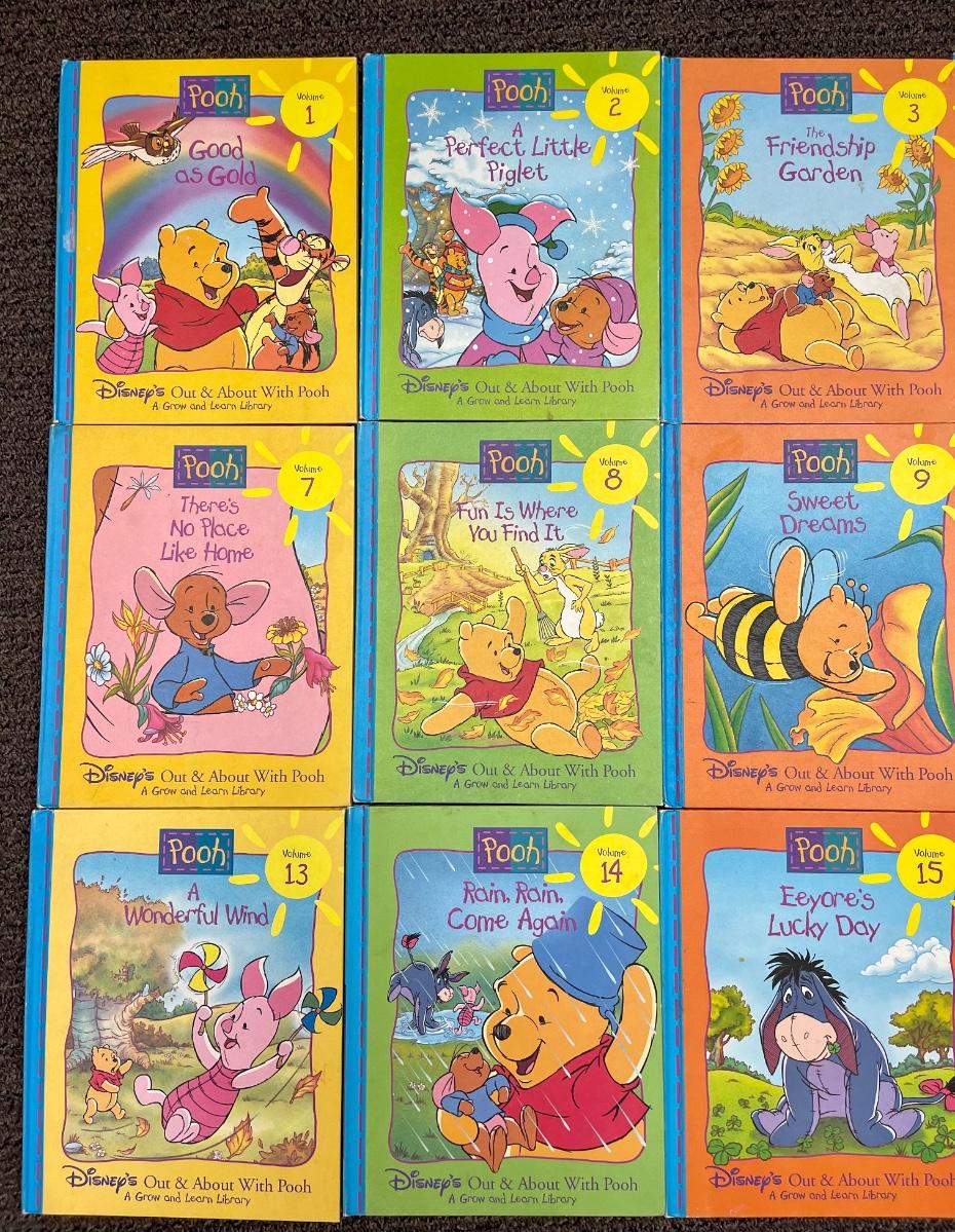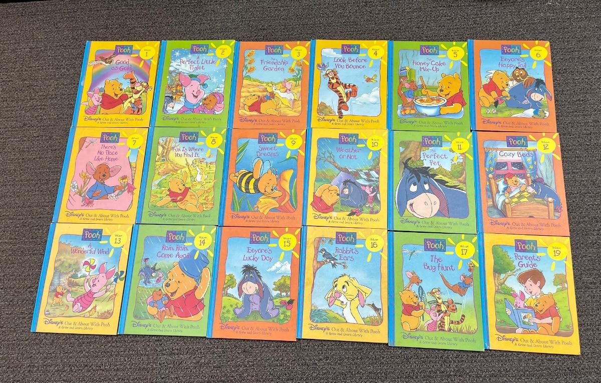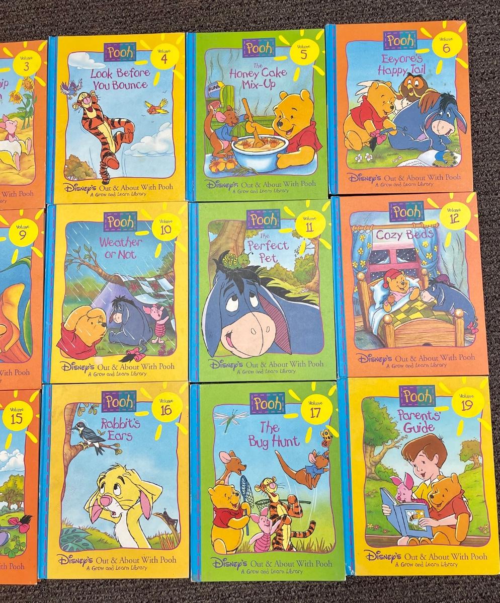 1996 Disney’s Out & About with Pooh Grow and Learn Hardback Books 18 of 19 Vol Set
