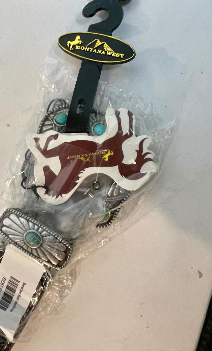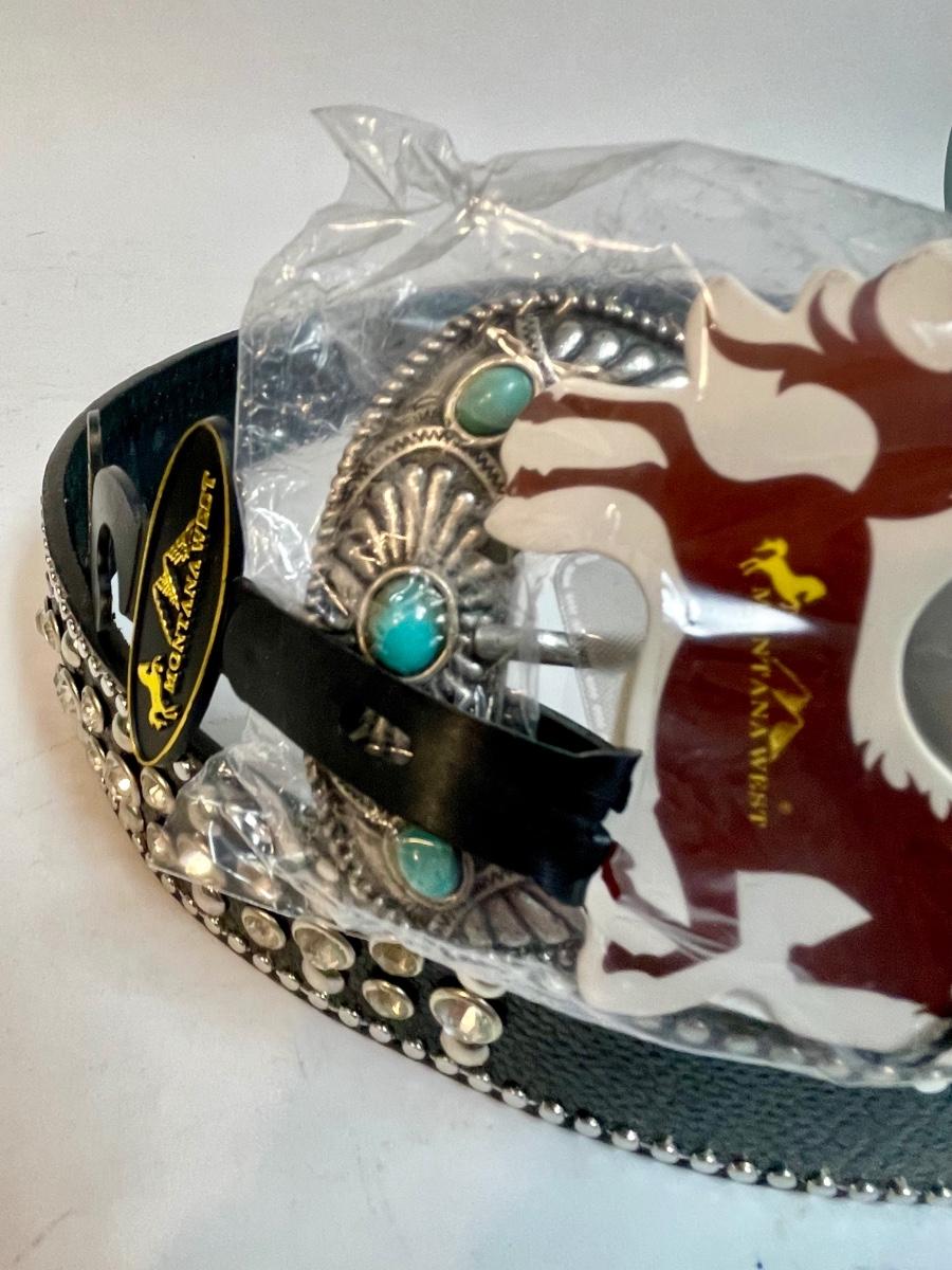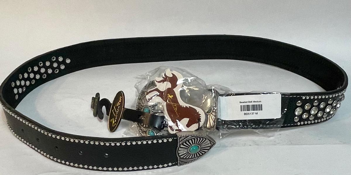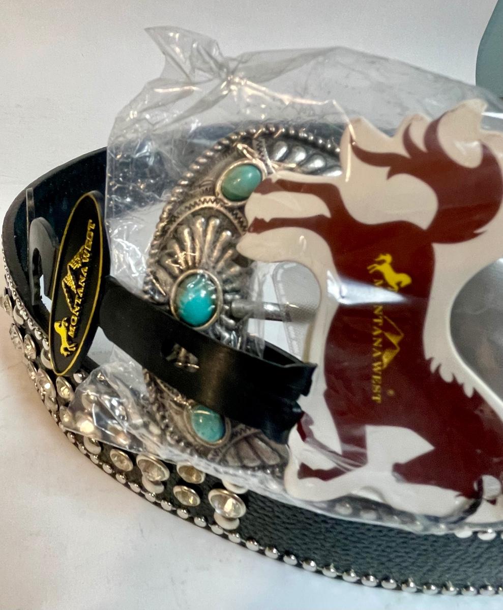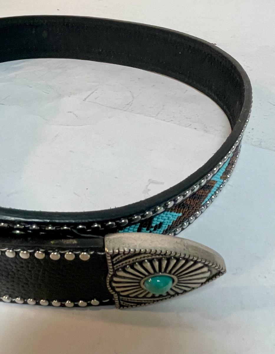 Black Belt - Western Attire Turquoise & Silver trim 38" waist
