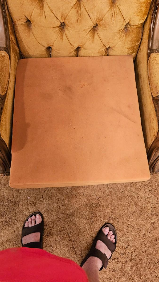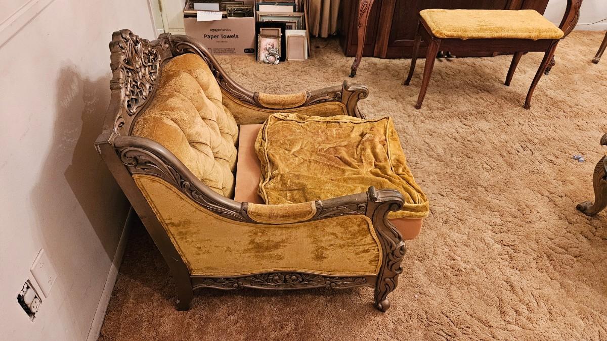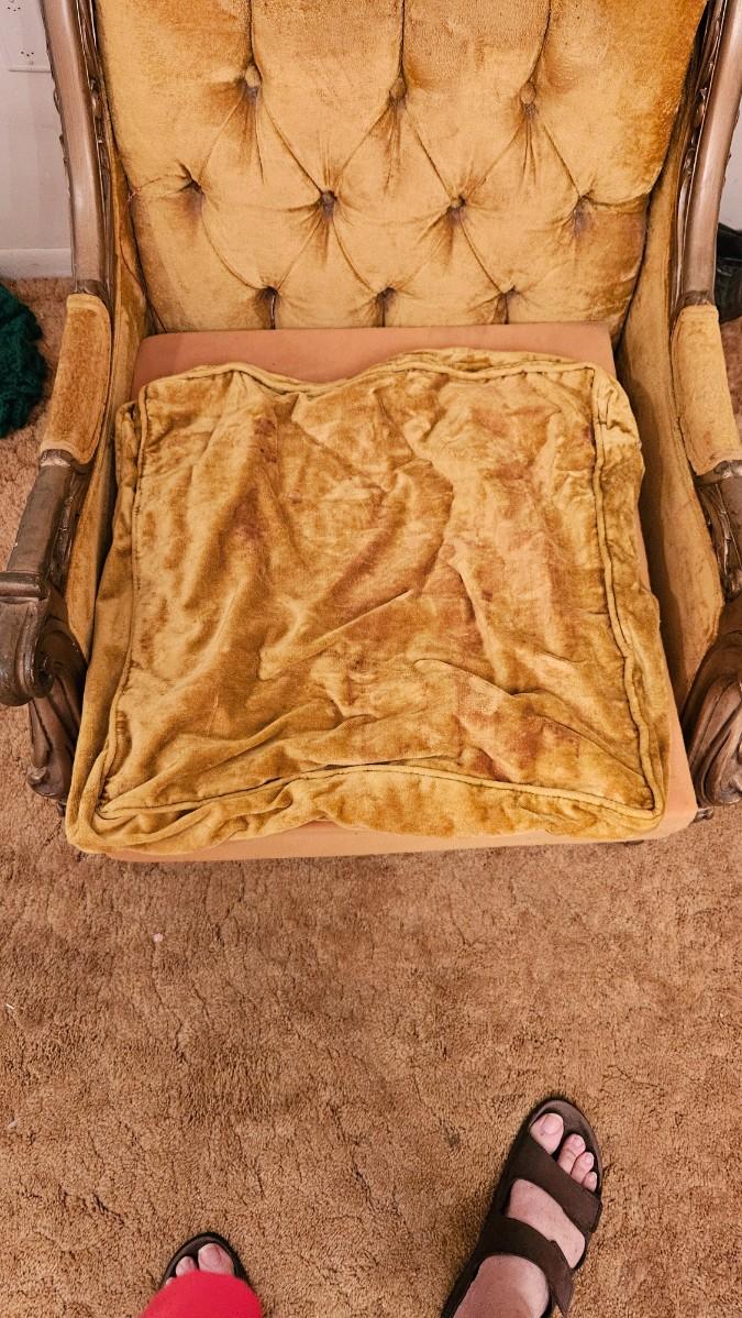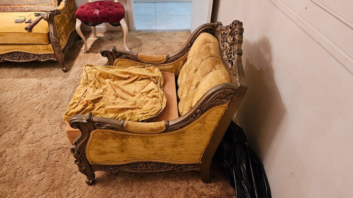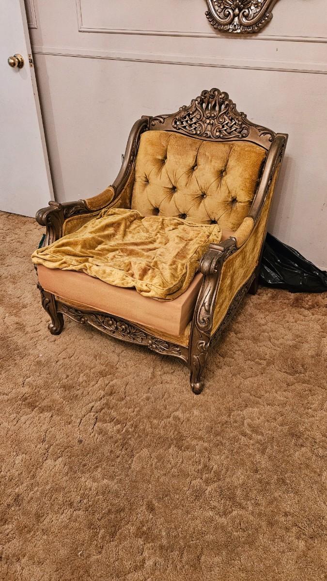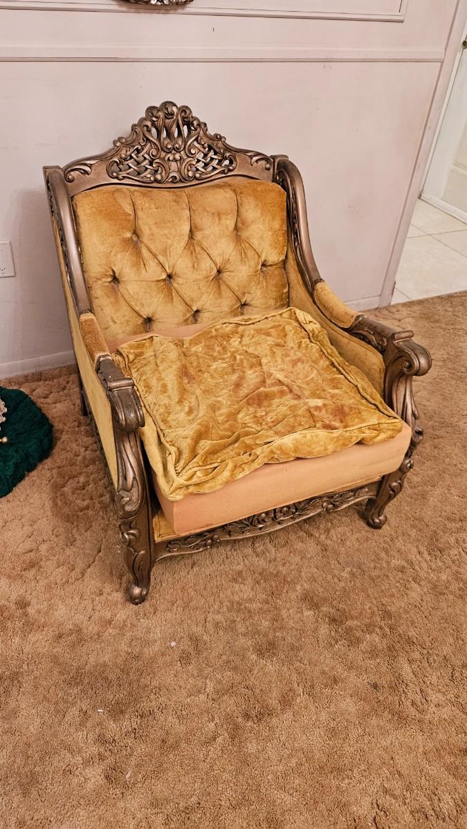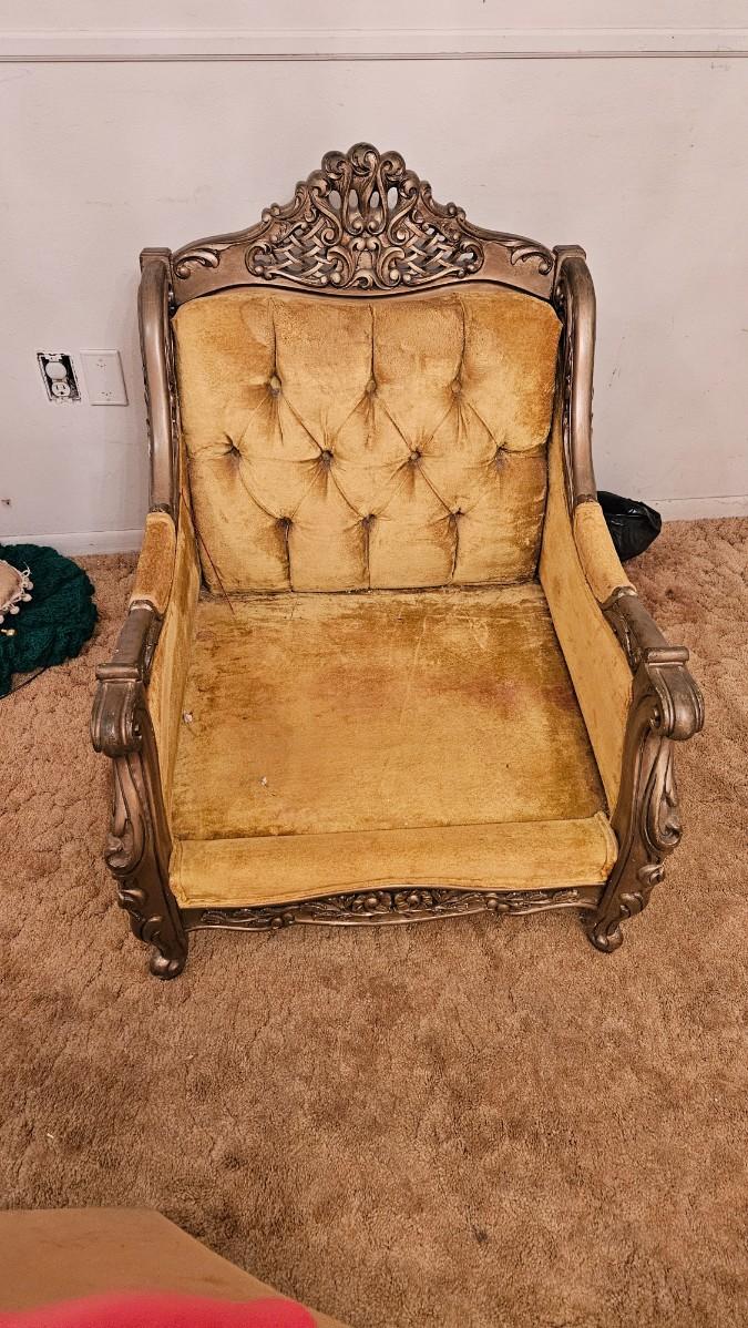 Antique Victorian Style Chair with Tufted Upholstery & Carved Wooden Frame