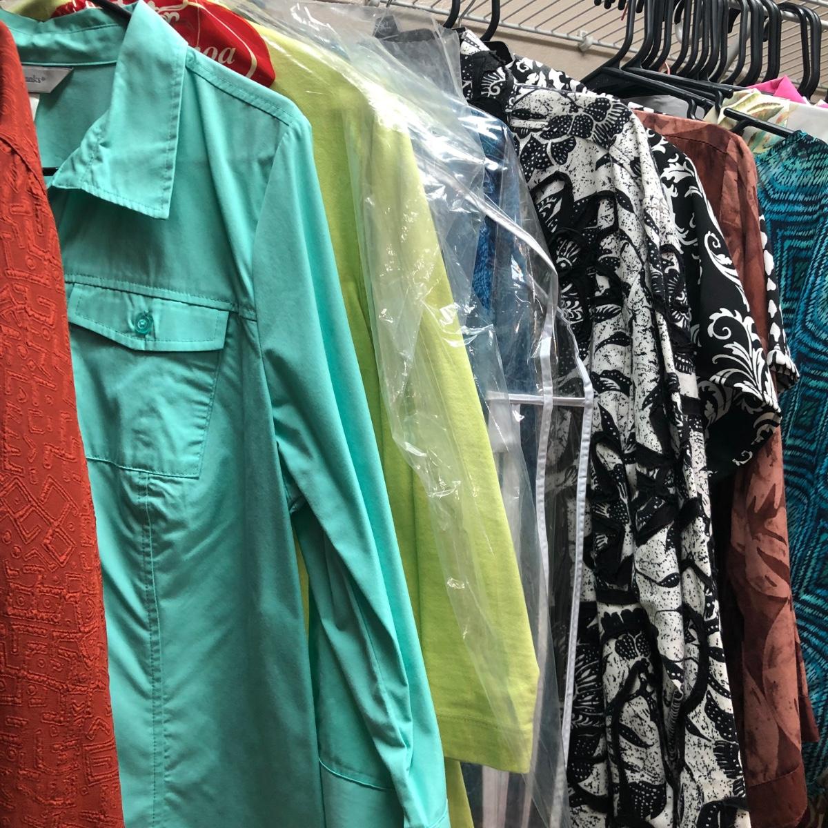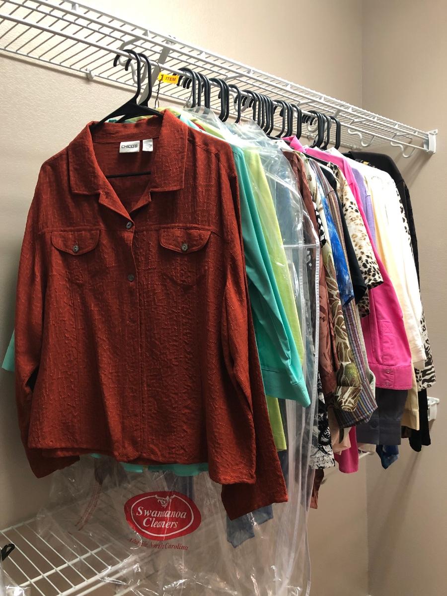 This collection of 33 casual and dress button down shirts & more is mostly in size XL. The clothes have been neatly stored on hangers. A few Chicos tops are size 3 in stretchy fabric. Shipping available.
