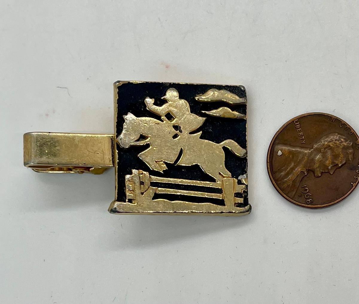Vintage Horse Jumping Fence Hurdle Tie Clip, good condition
