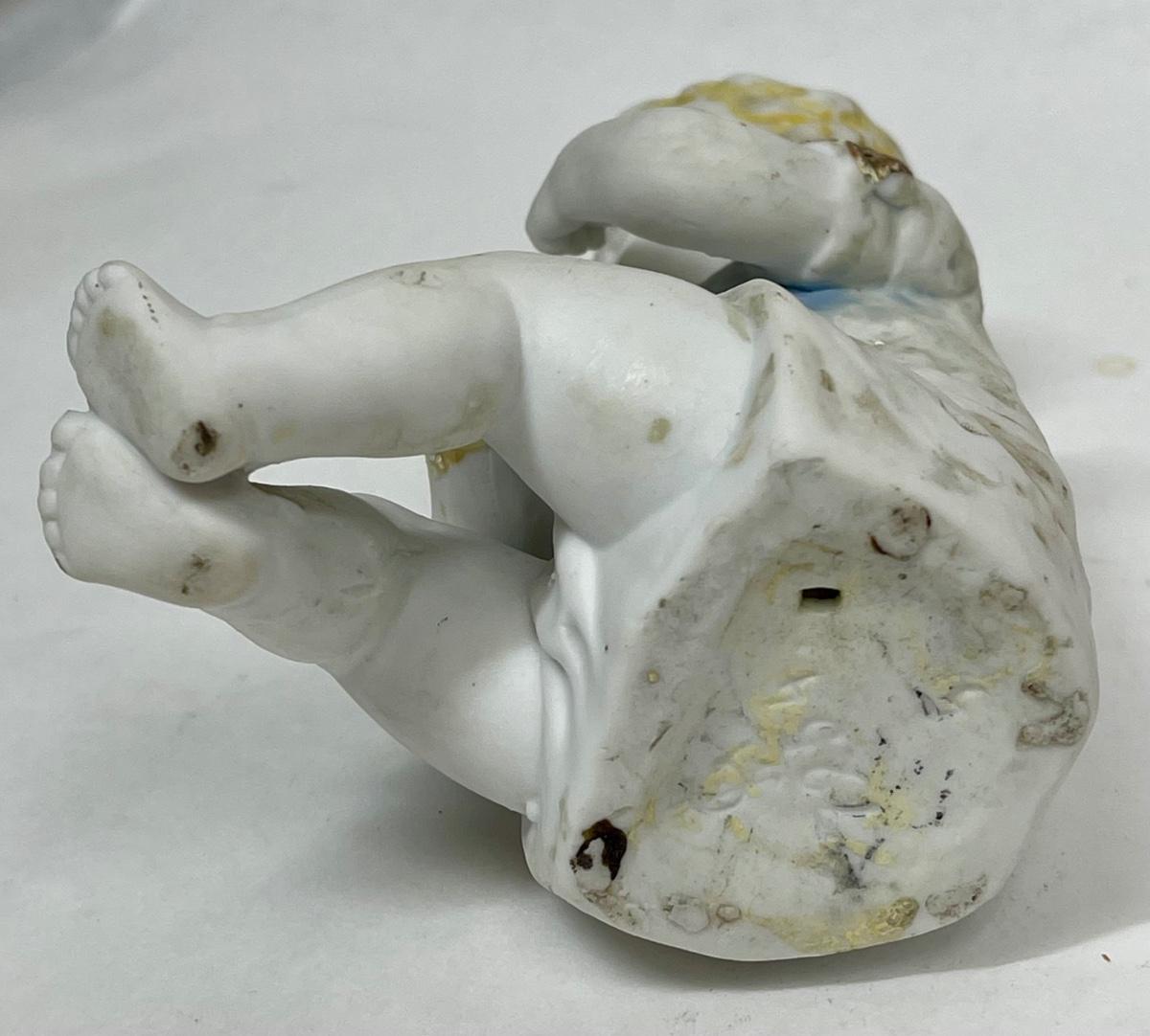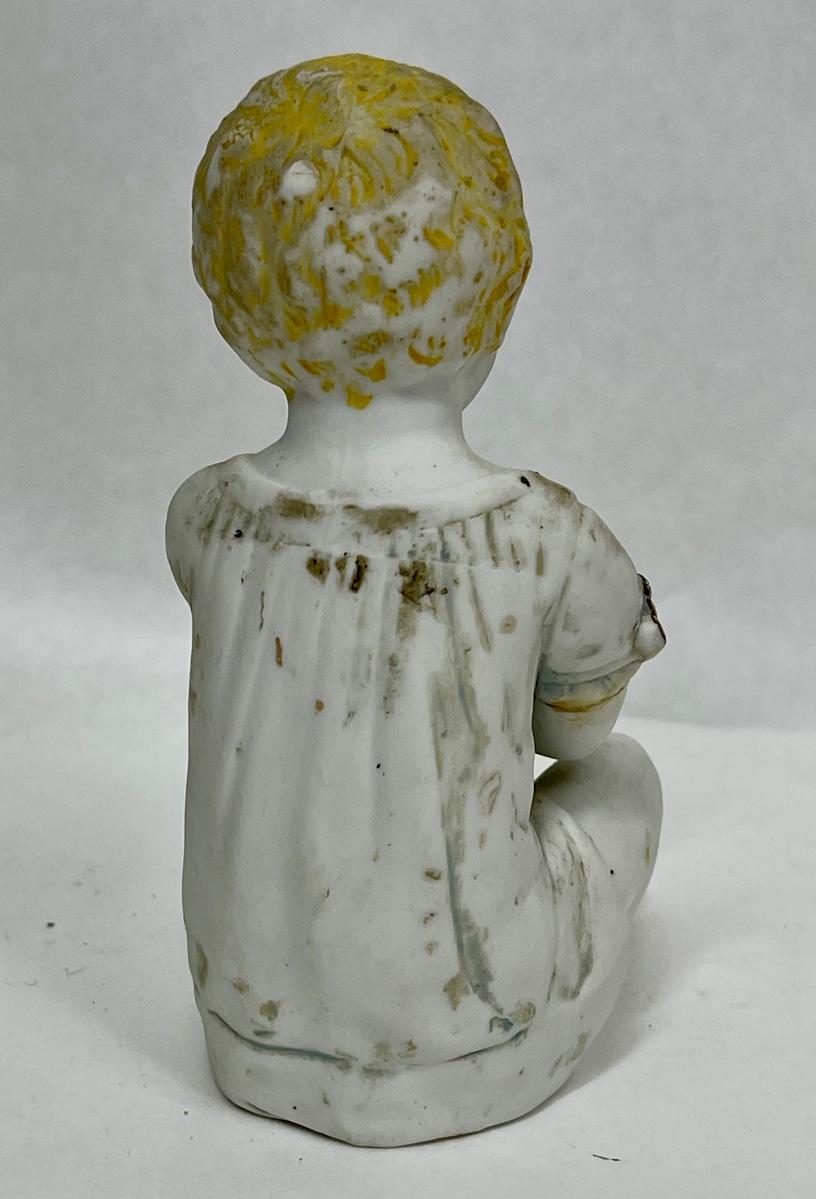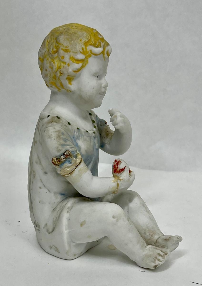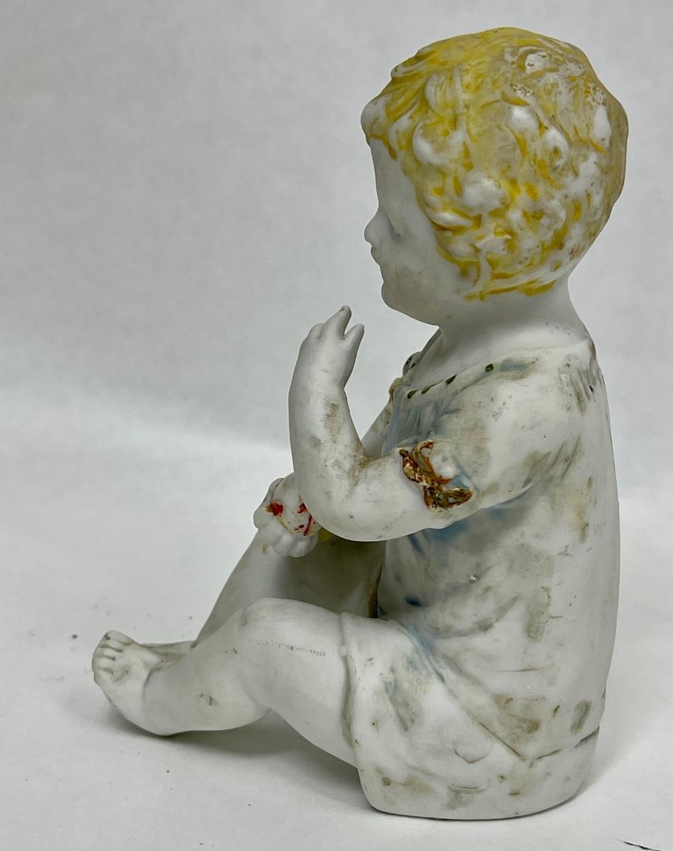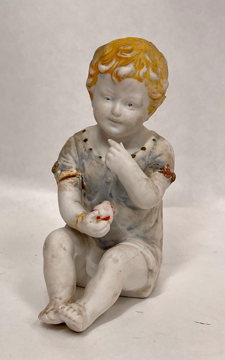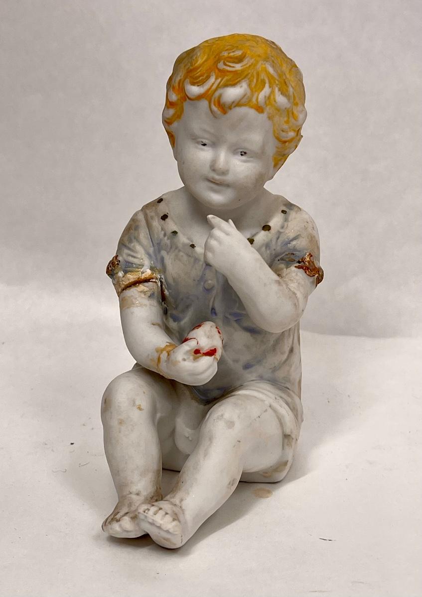 Antique Vintage Bisque Porcelain Figurine Child Baby sitting with fruit