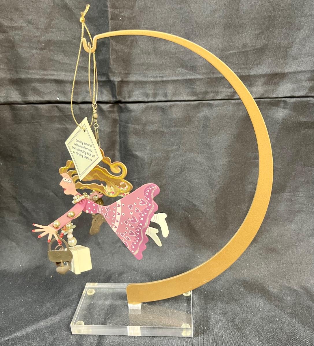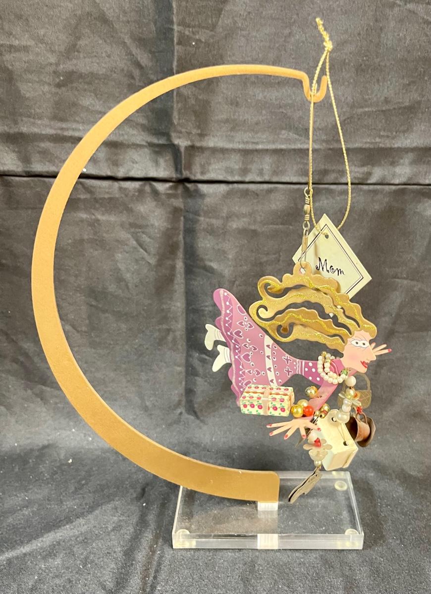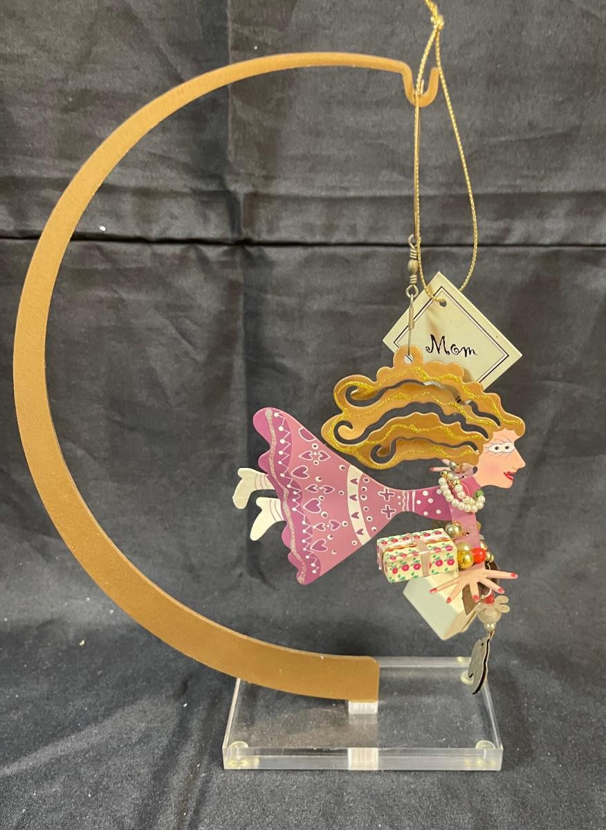 Folk Art Style Mom Hanging Ornament with Stand. In good condition.