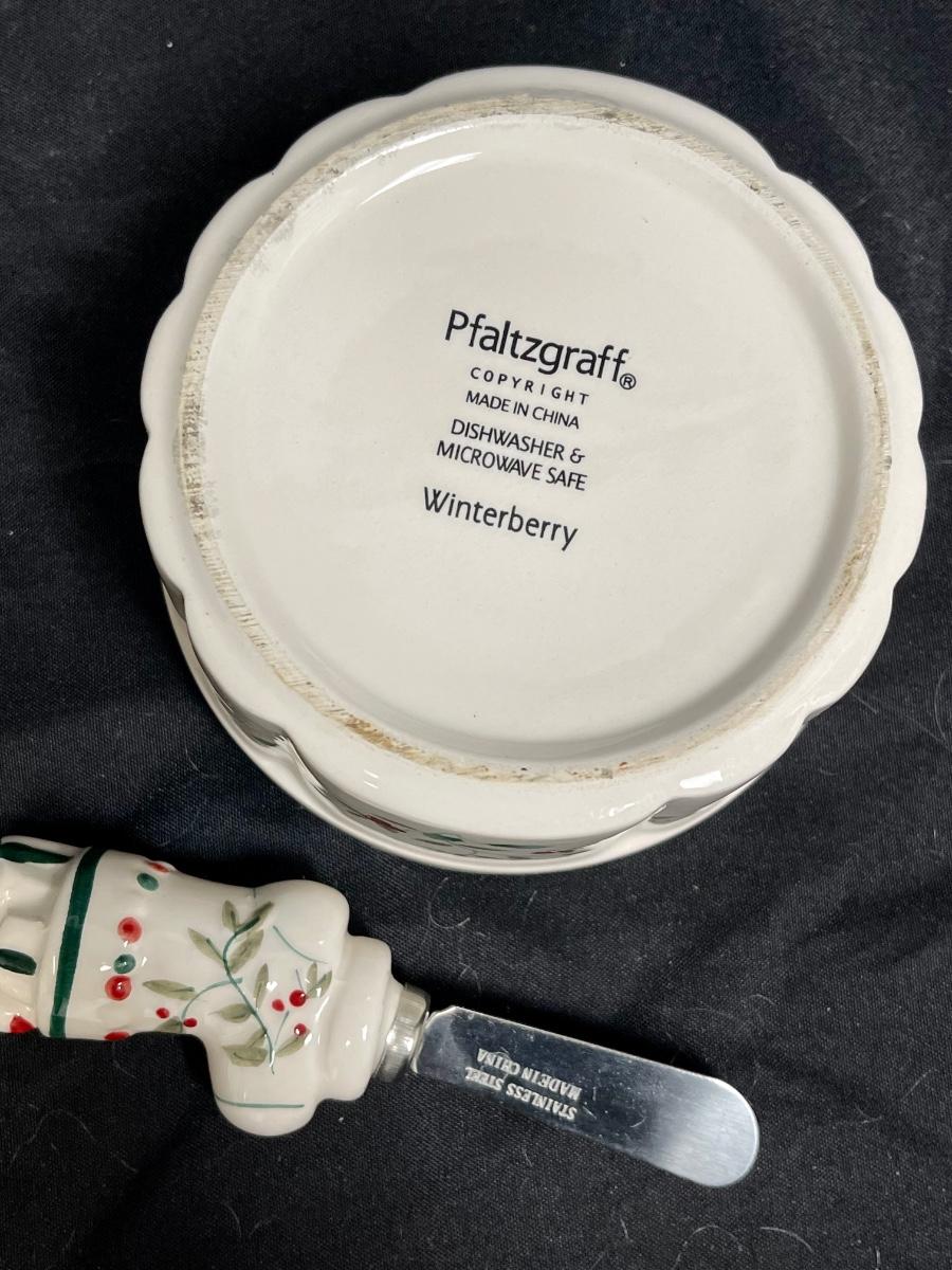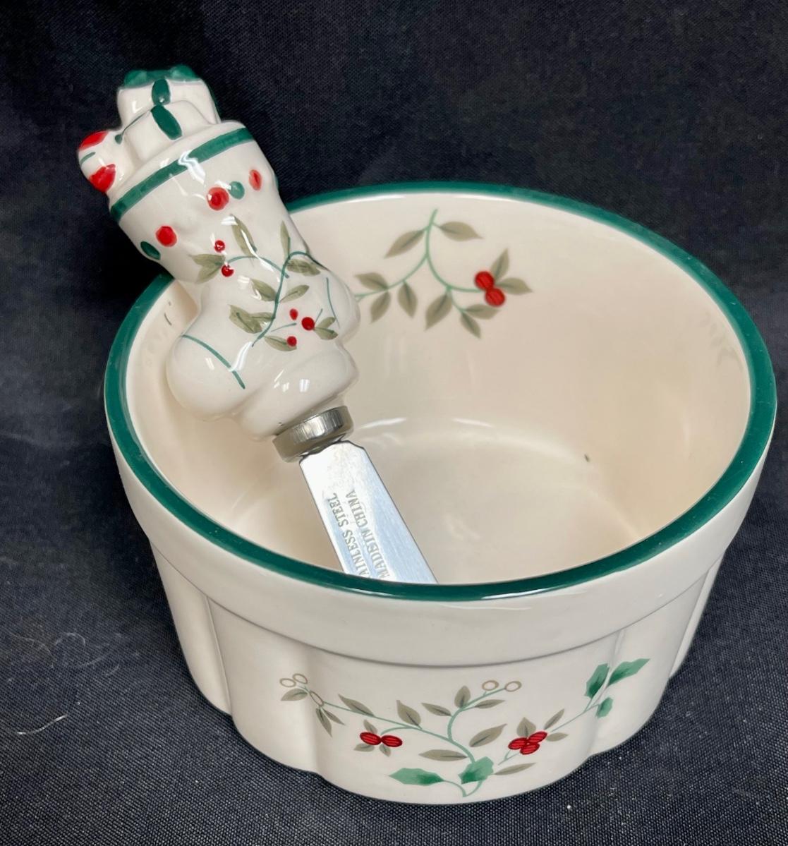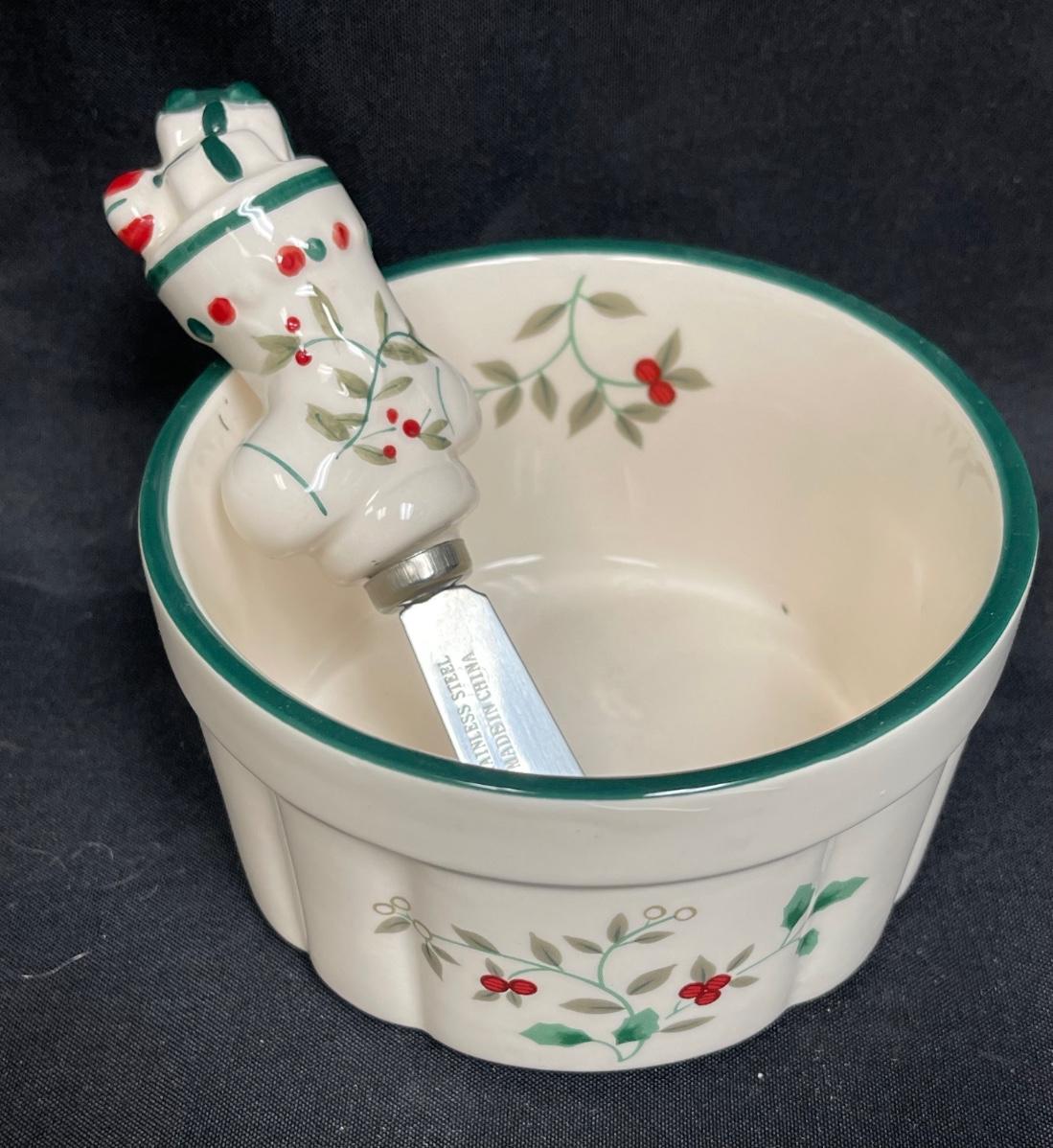 Pfaltzgraff Winterberry Cheese Spread Knife and Small Serving Bowl