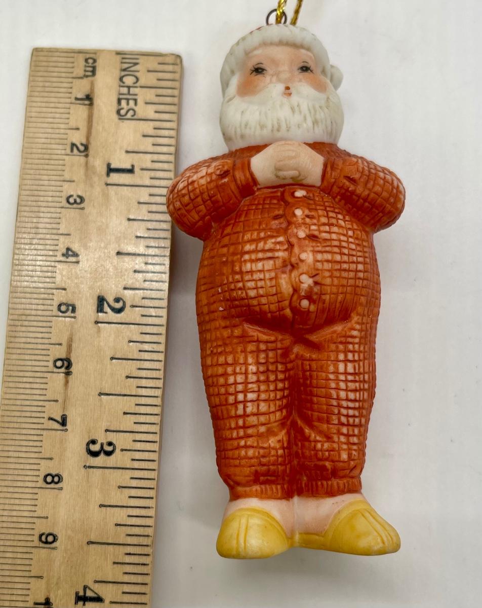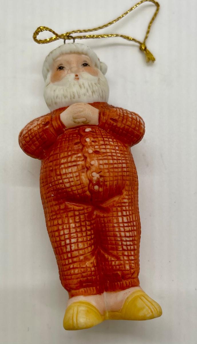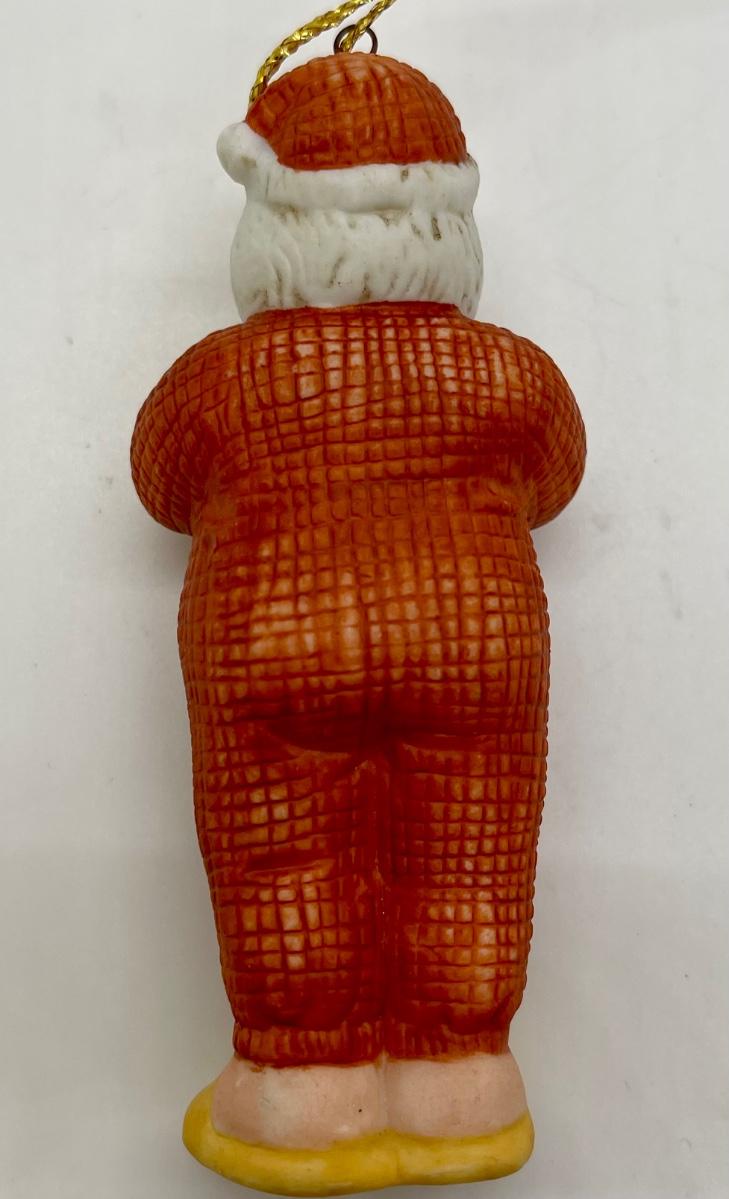 1985 Schmid Porcelain Santa Claus in Long Johns Christmas Holiday Tree Ornament. In good condition. Under 4" size.