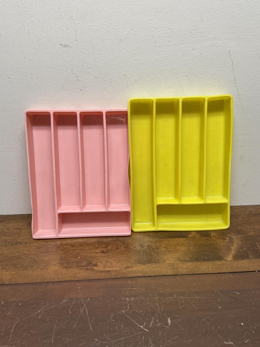Retro Pink & Yellow Silverware divided trays