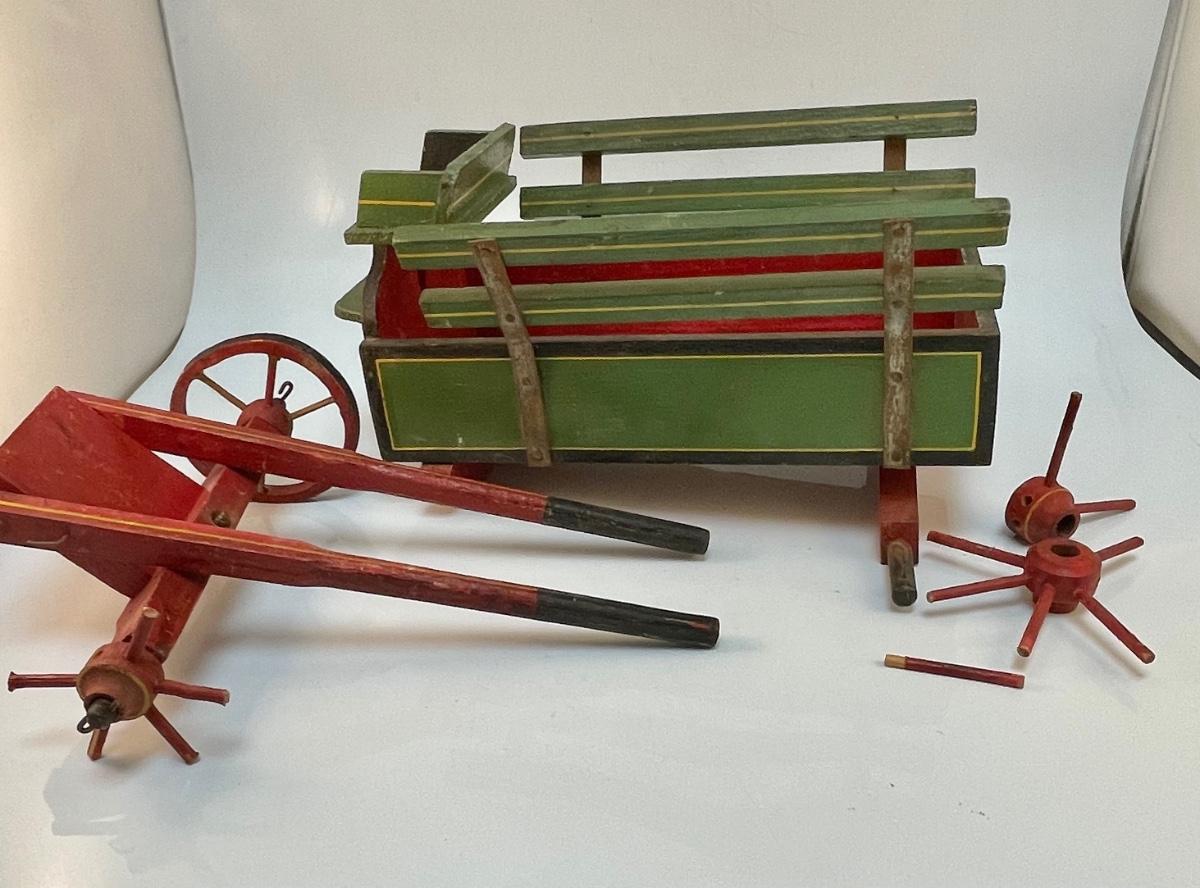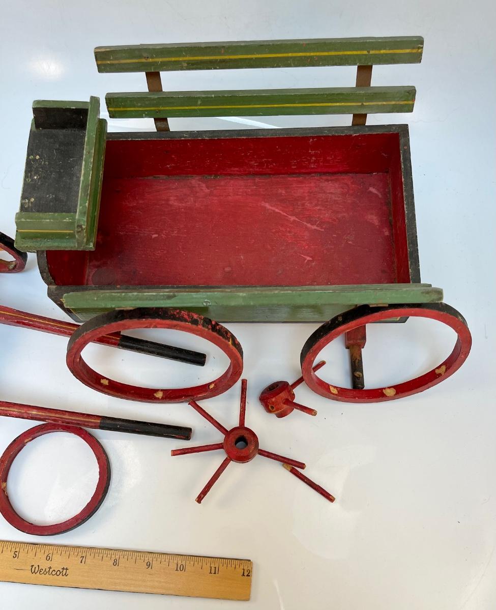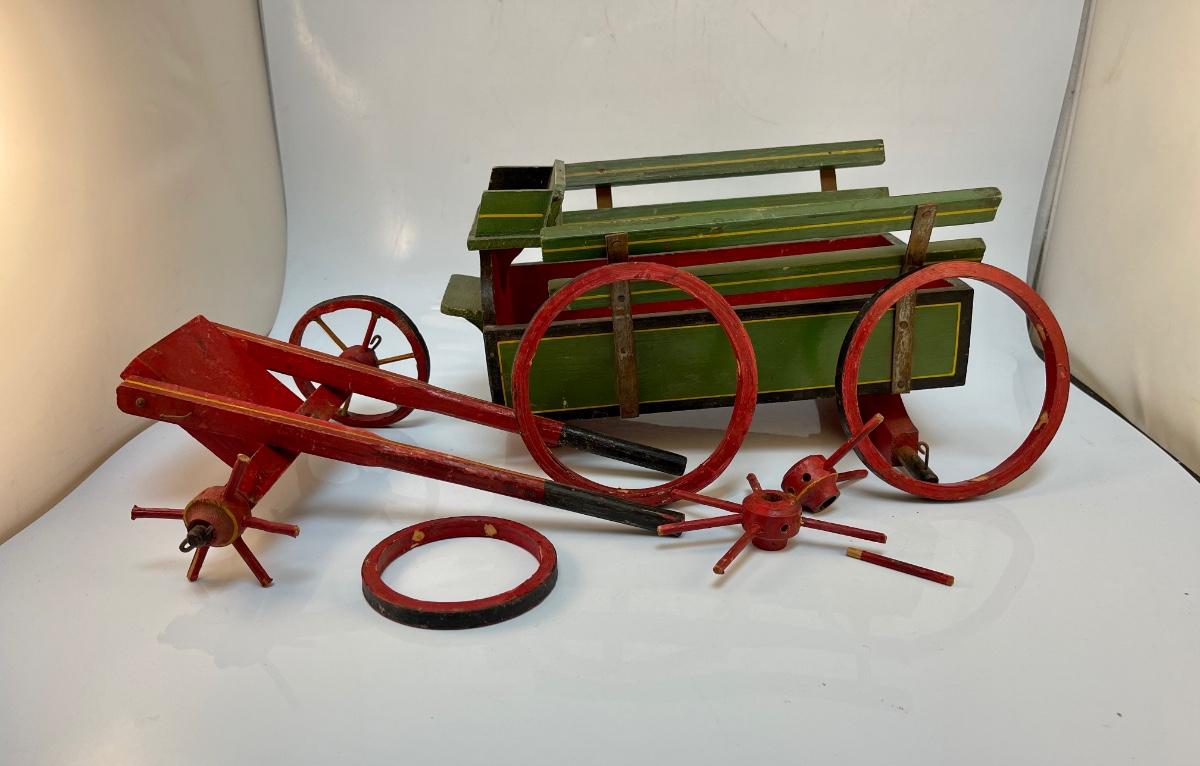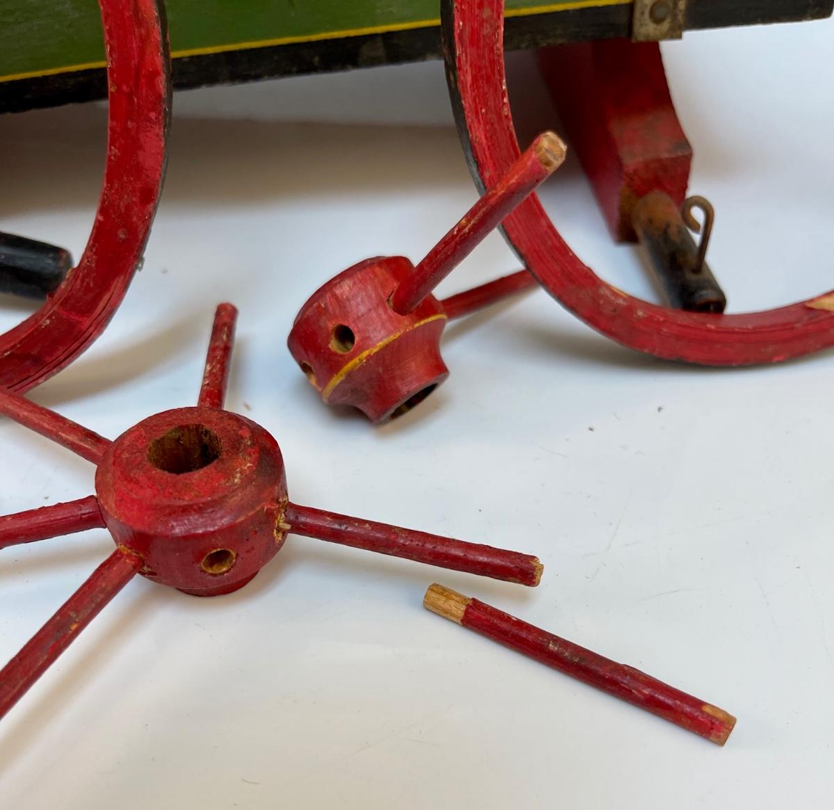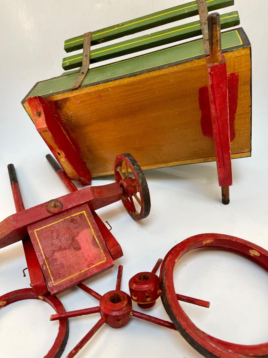 Vintage Painted Wood Toy Cart for Repair. Well loved, needs some fixing.