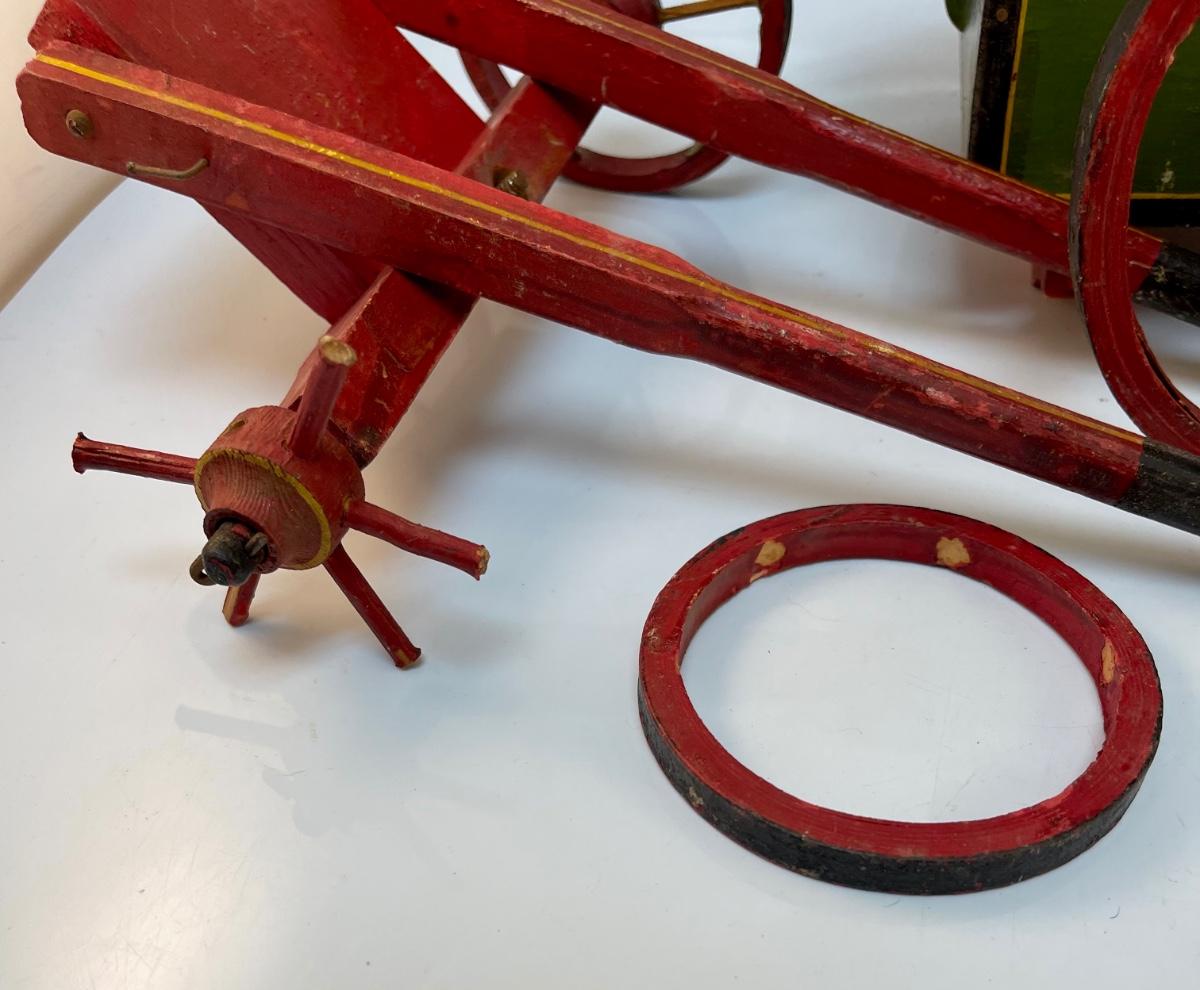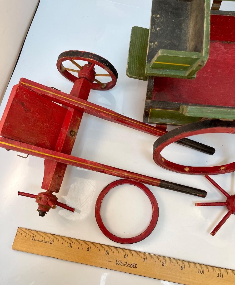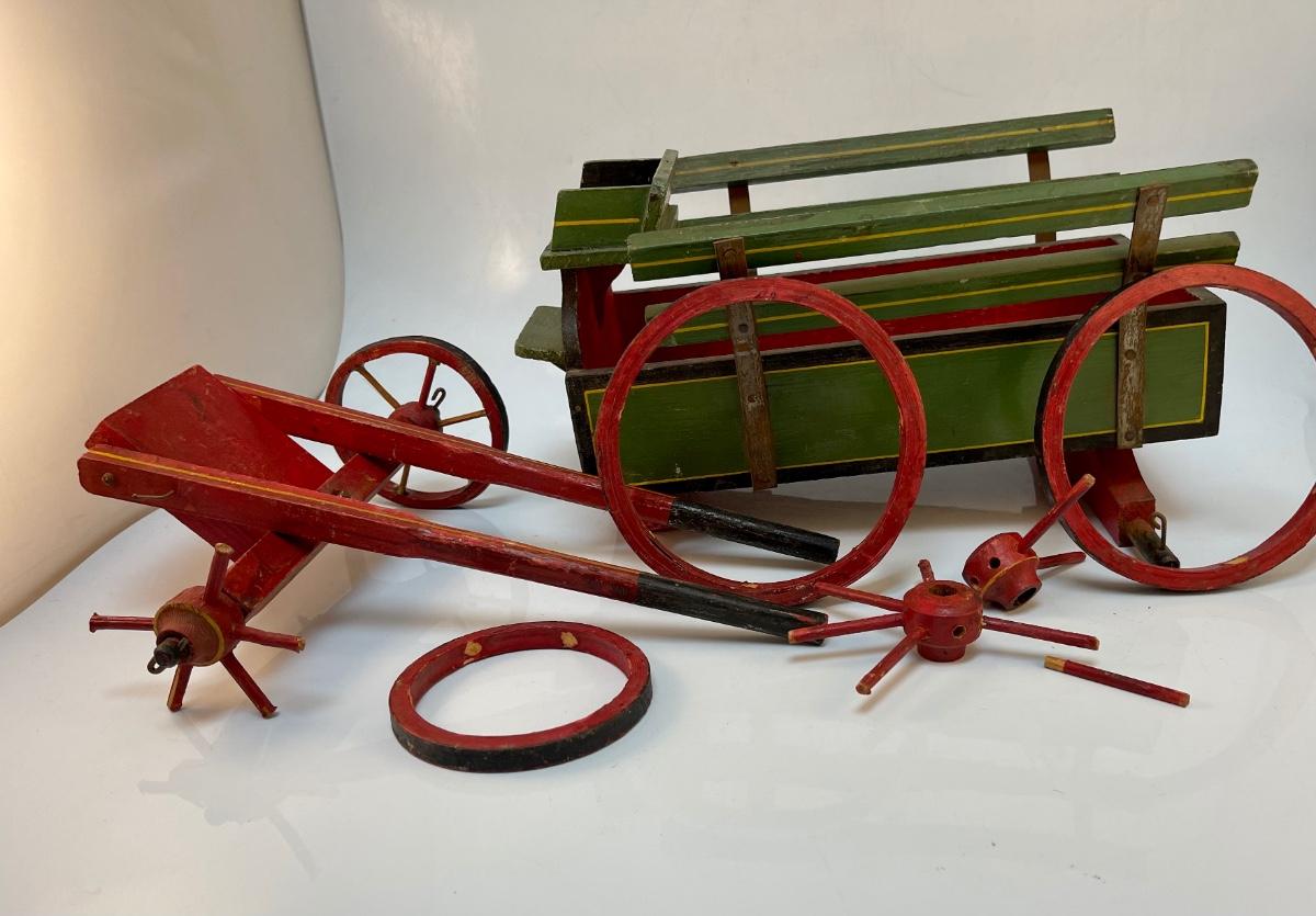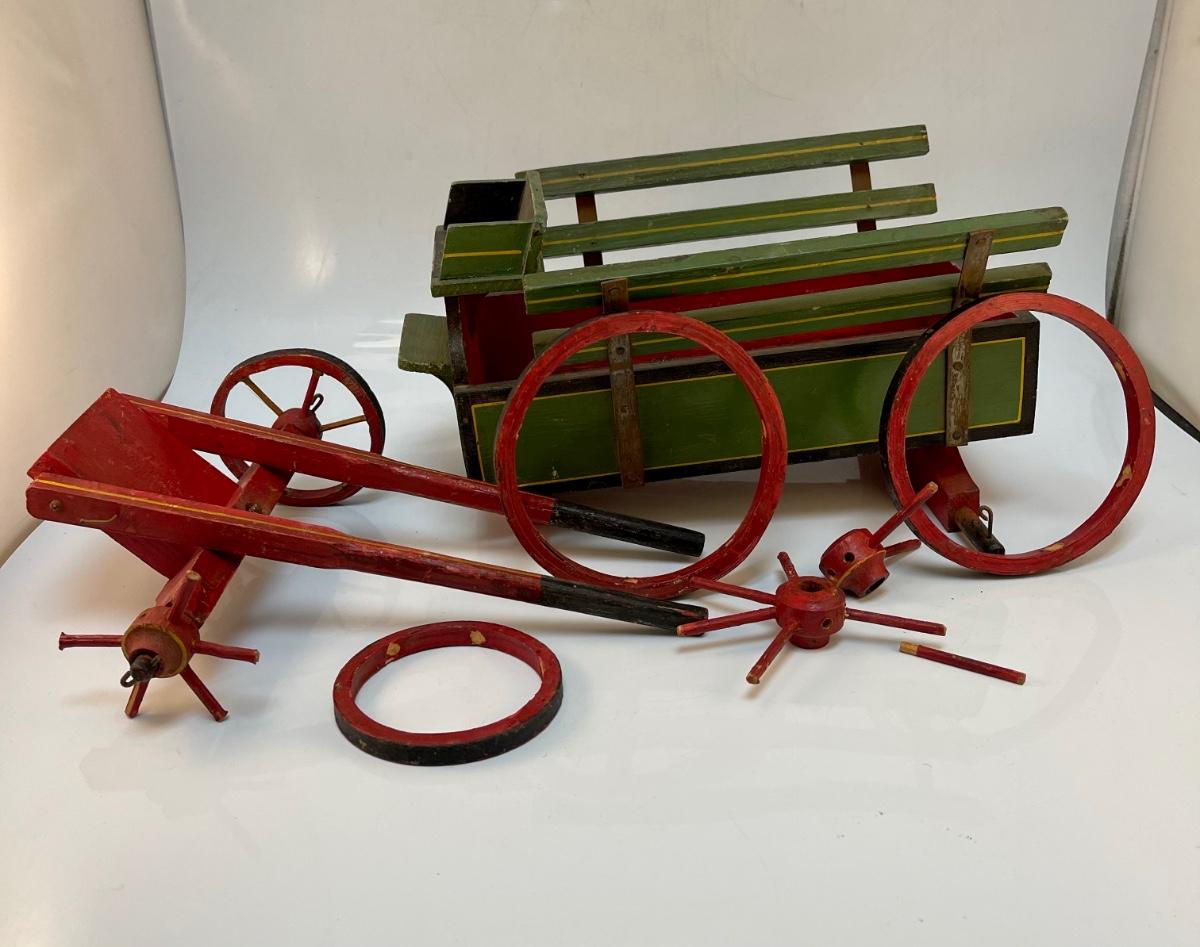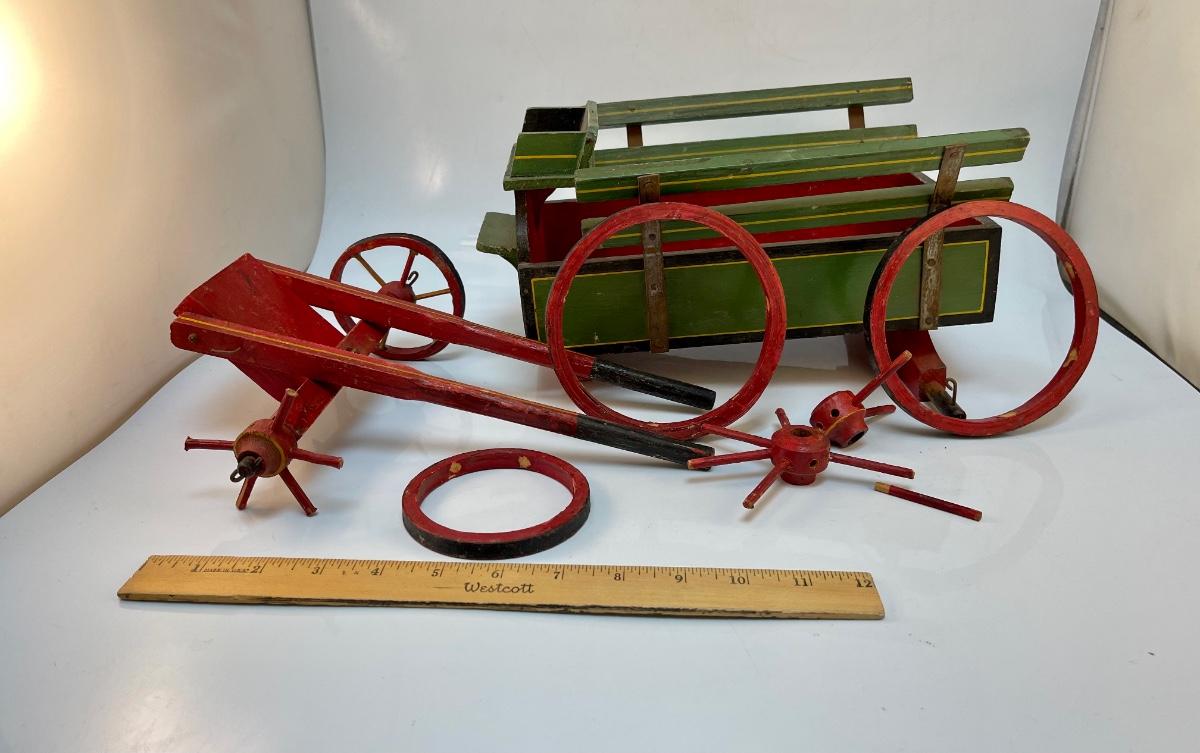 Vintage Painted Wood Toy Cart for Repair. Well loved, needs some fixing.